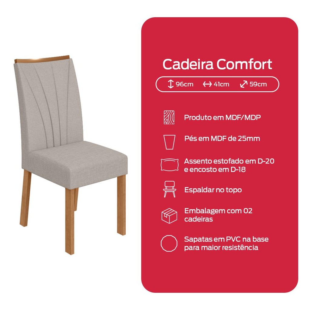 Conjunto Sala de Jantar Mesa Easy Pop 120x80cm Tampo Vidro/MDF com 4 Cadeiras Confort Linho Cinza Amendoa/off