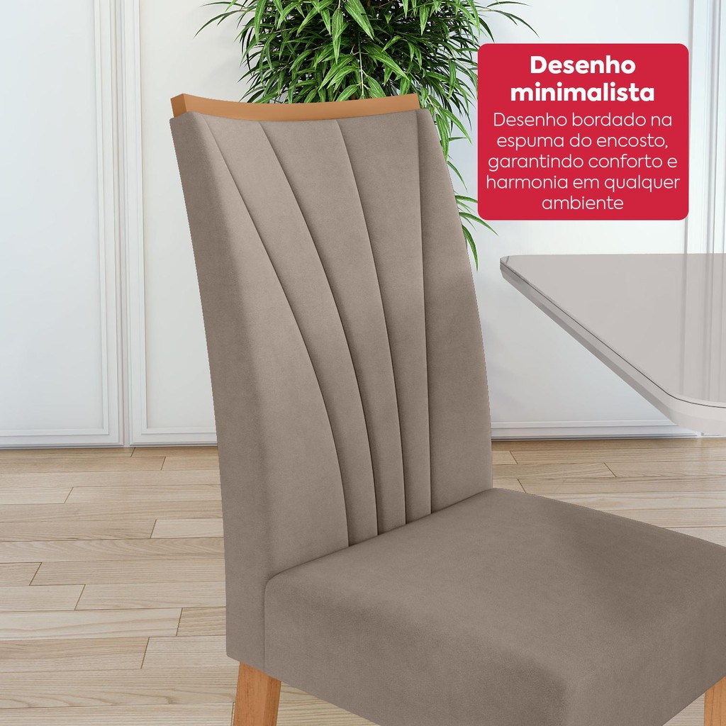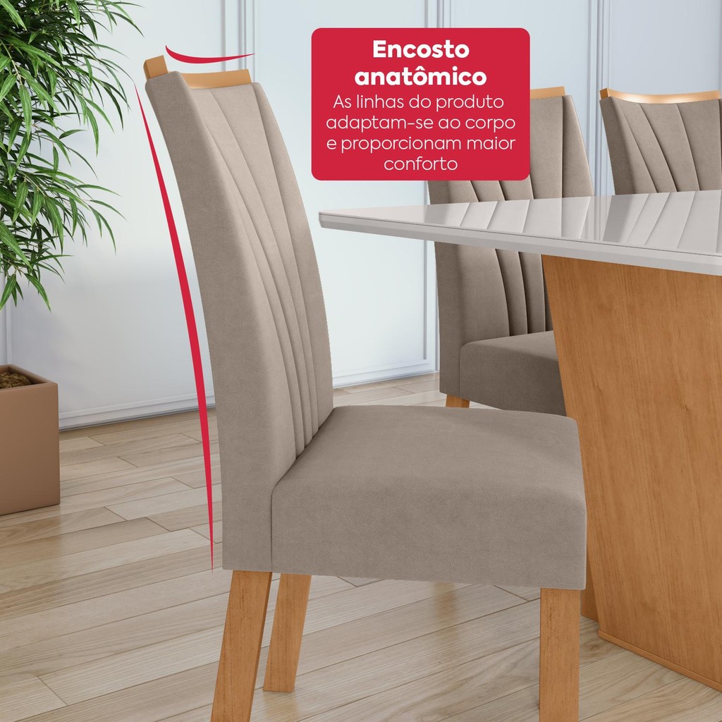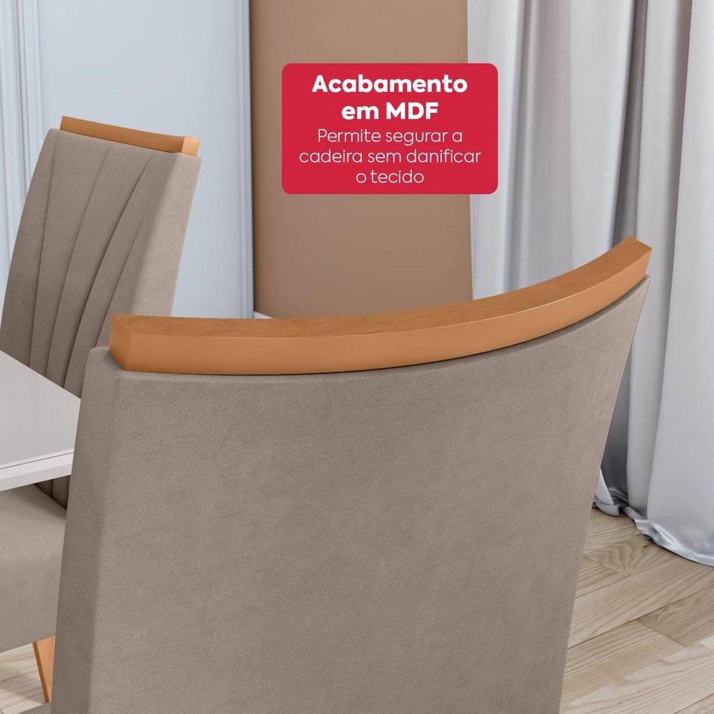 Mesa de Jantar 1,70 Apogeu com vidro e 6 cadeiras Apogeu tecido Suede Animale Amêndoa /Off