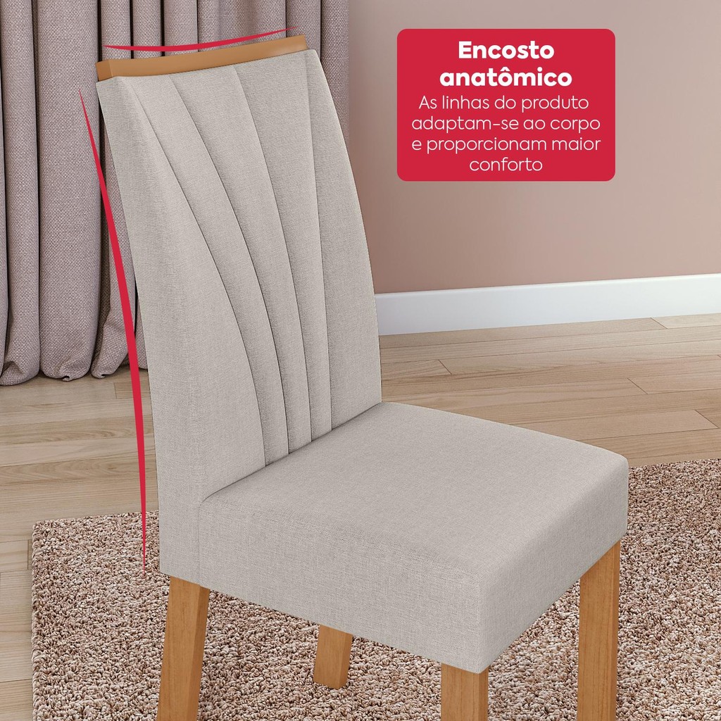 Conjunto Sala de Jantar Mesa Easy Pop 120x80cm Tampo MDF com 4 Cadeiras Confort Linho Cinza Amên/Off