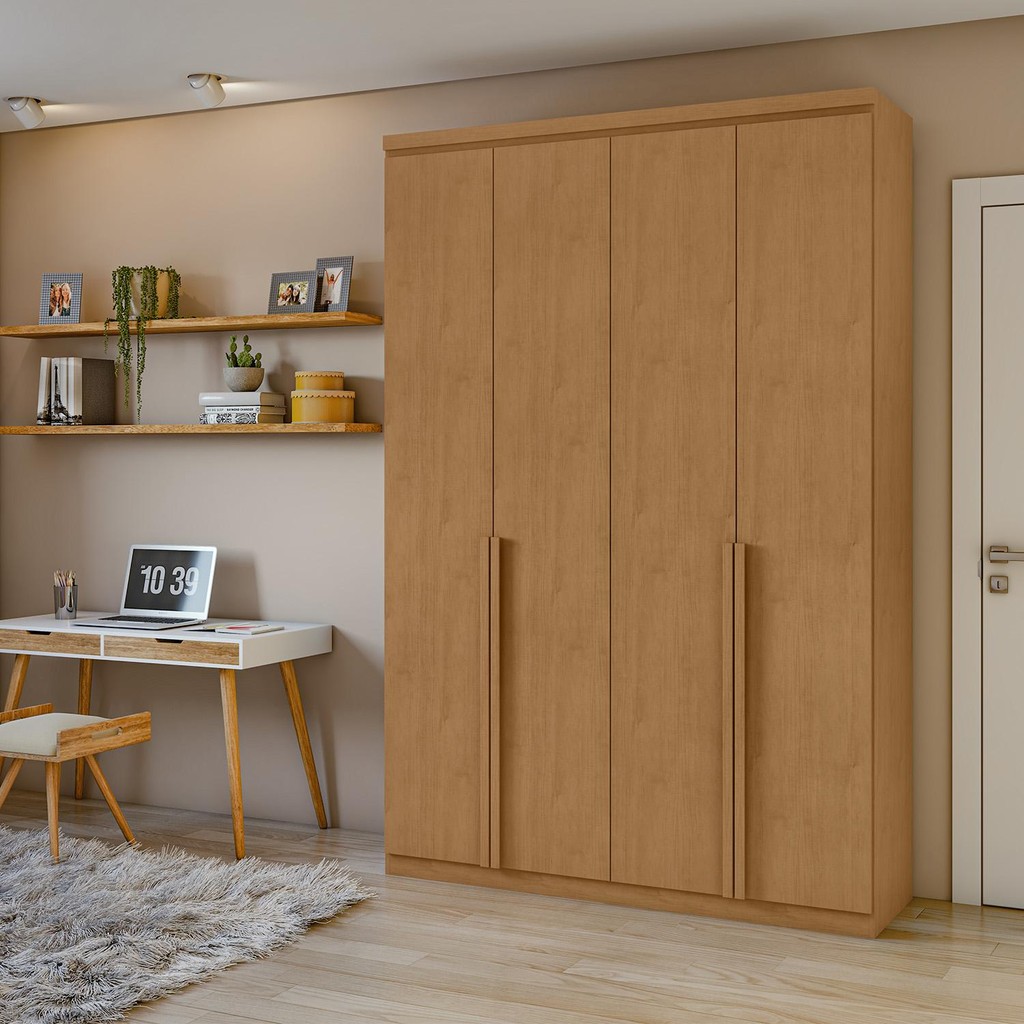 Guarda-Roupa Solteiro 100%MDF Alonzo 4 portas Amêndoa Clean