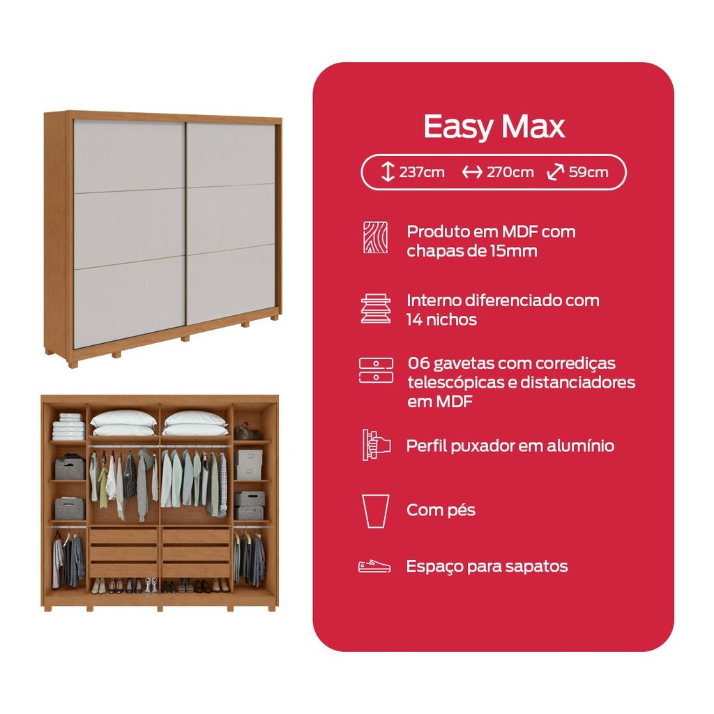 Guarda-roupa Casal 100% MDF 2 Portas 6 Gavetas Easy Max Com Pés Amendoa/Off White