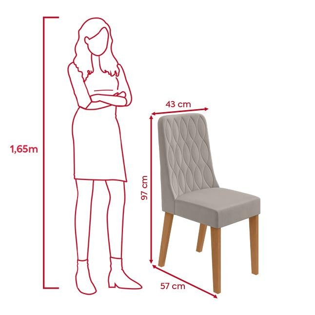 Conjunto Sala de Jantar Mesa Easy Pop 170x90cm Tampo Vidro/MDF com 6 Cadeiras Seat Veludo Liso Capuccino Amendoa/Off