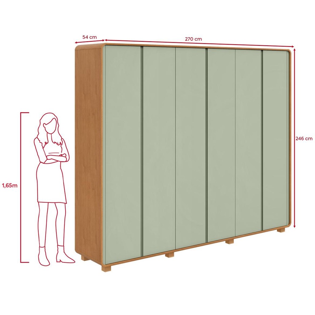 Guarda-Roupa Casal 6 100% MDF Pts Easy Like Amendoa Clean/Salvia