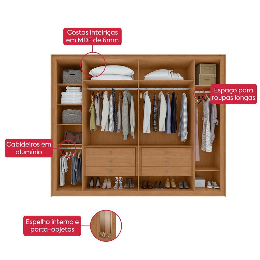 Guarda Roupa Casal 100% MDF 6 Portas Easy Space Amendoa Clean -Lopas