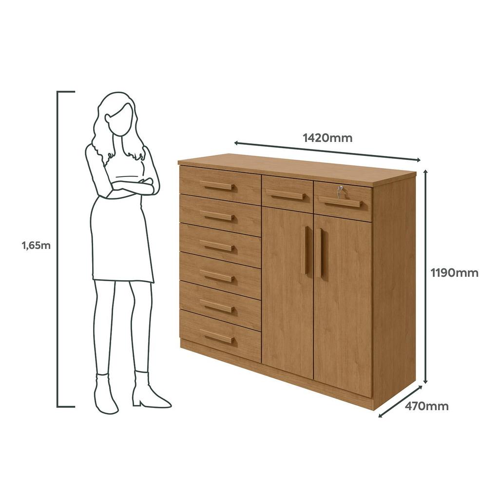 Comoda 8 Gavetas 2 Portas Toronto Amendoa Clean -Lopas