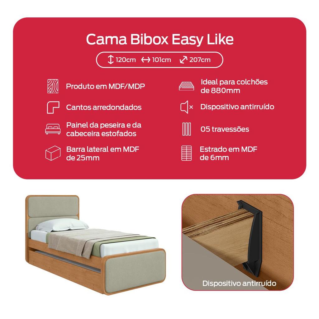 Cama Solteiro Easy Like com Cama Auxiliar Tec Boucle Sál Amendoa Clean