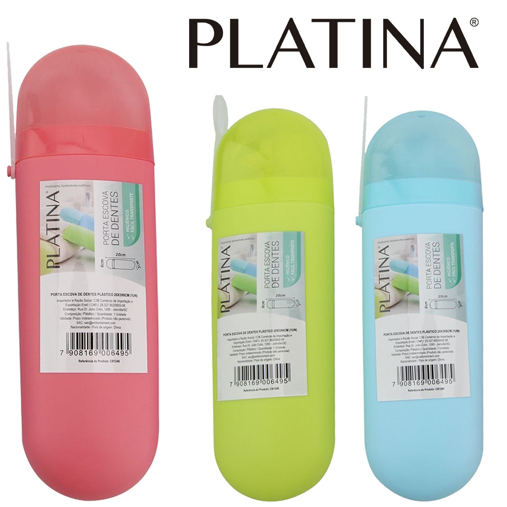 PORTA ESCOVA / ESTOJO DENTAL DE PLASTICO OVAL BIPARTIDO COM ALCA PLATINA COLORS 20X6CM Cor: sortidas Peso: 45g