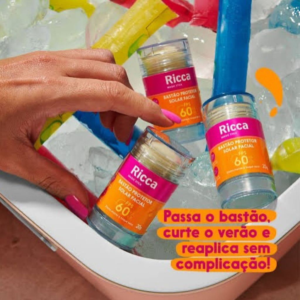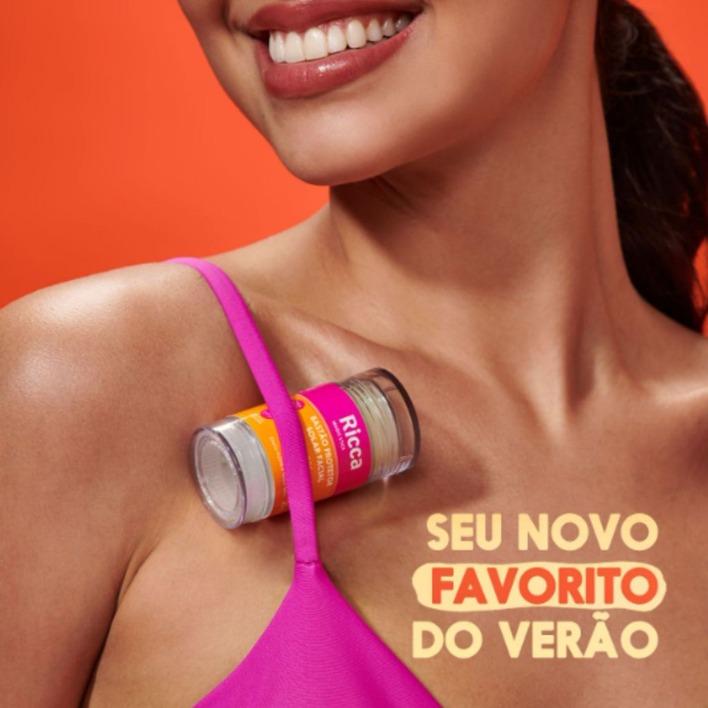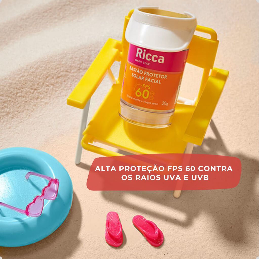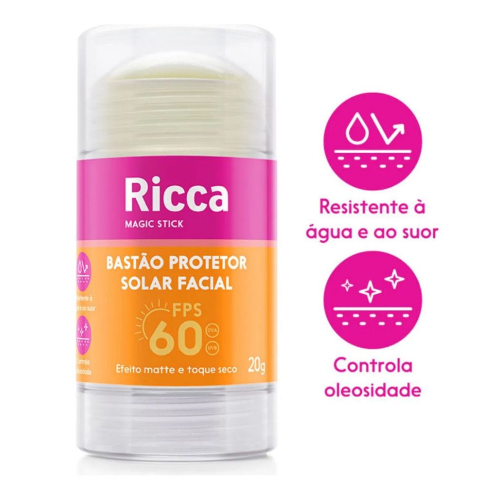 Bastão Facial Protetor Solar FPS 60 Ricca 20g Proteção Alta e Toque Seco Para Todos os Tipos de Pele