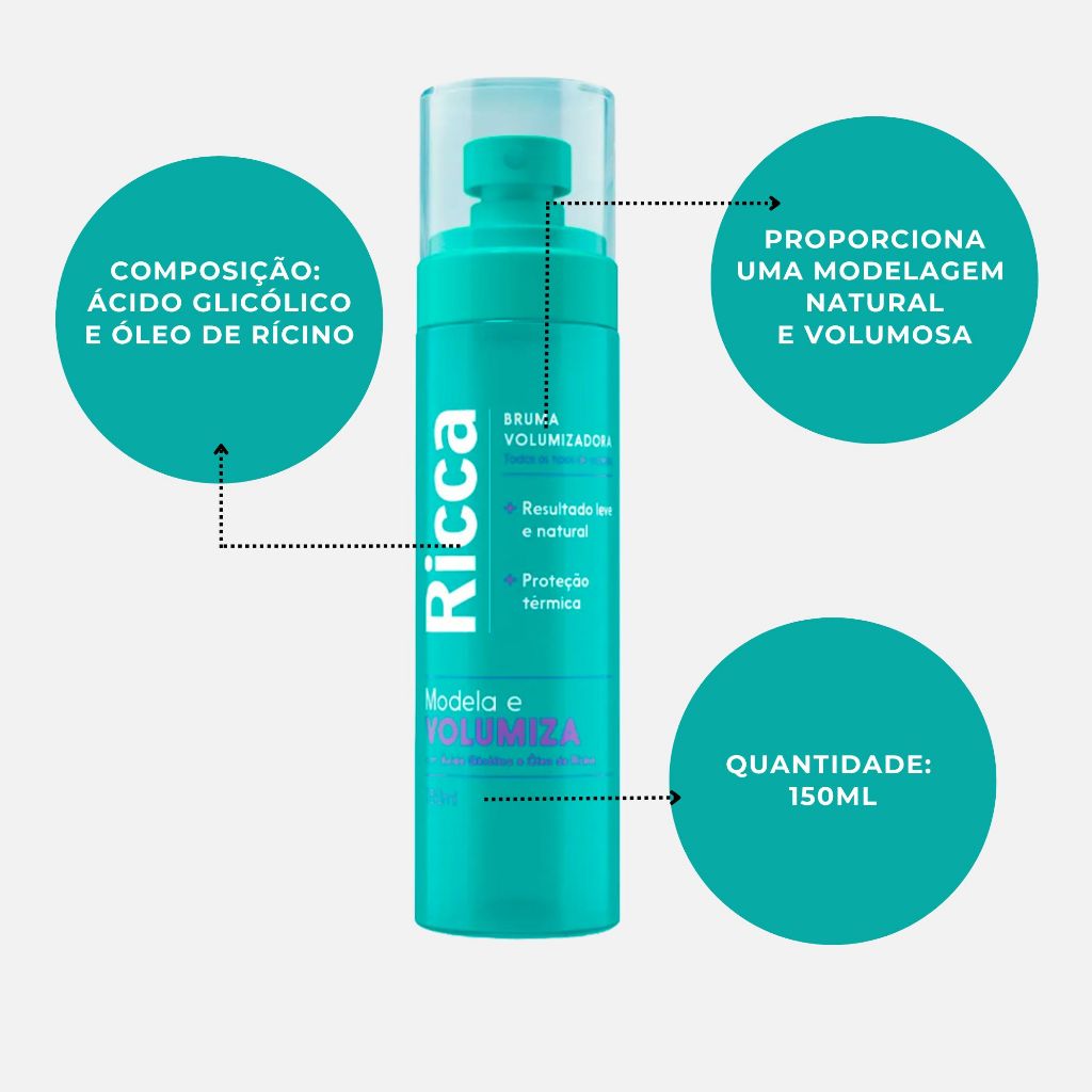 Bruma Ricca Volumizadora e Modeladora 150ml Proteção Térmica Nutrição Volume Natural Óleo de Rícino