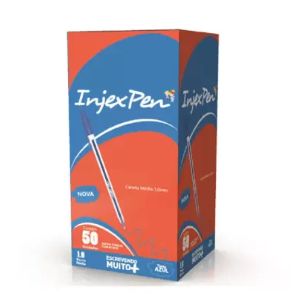 Caneta Esferográfica Azul 1.0mm Caixa 50 Un Injex Pen