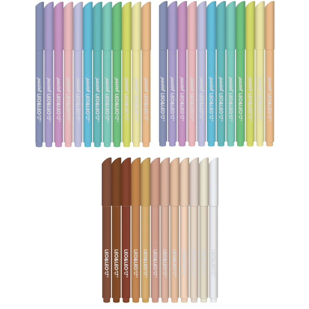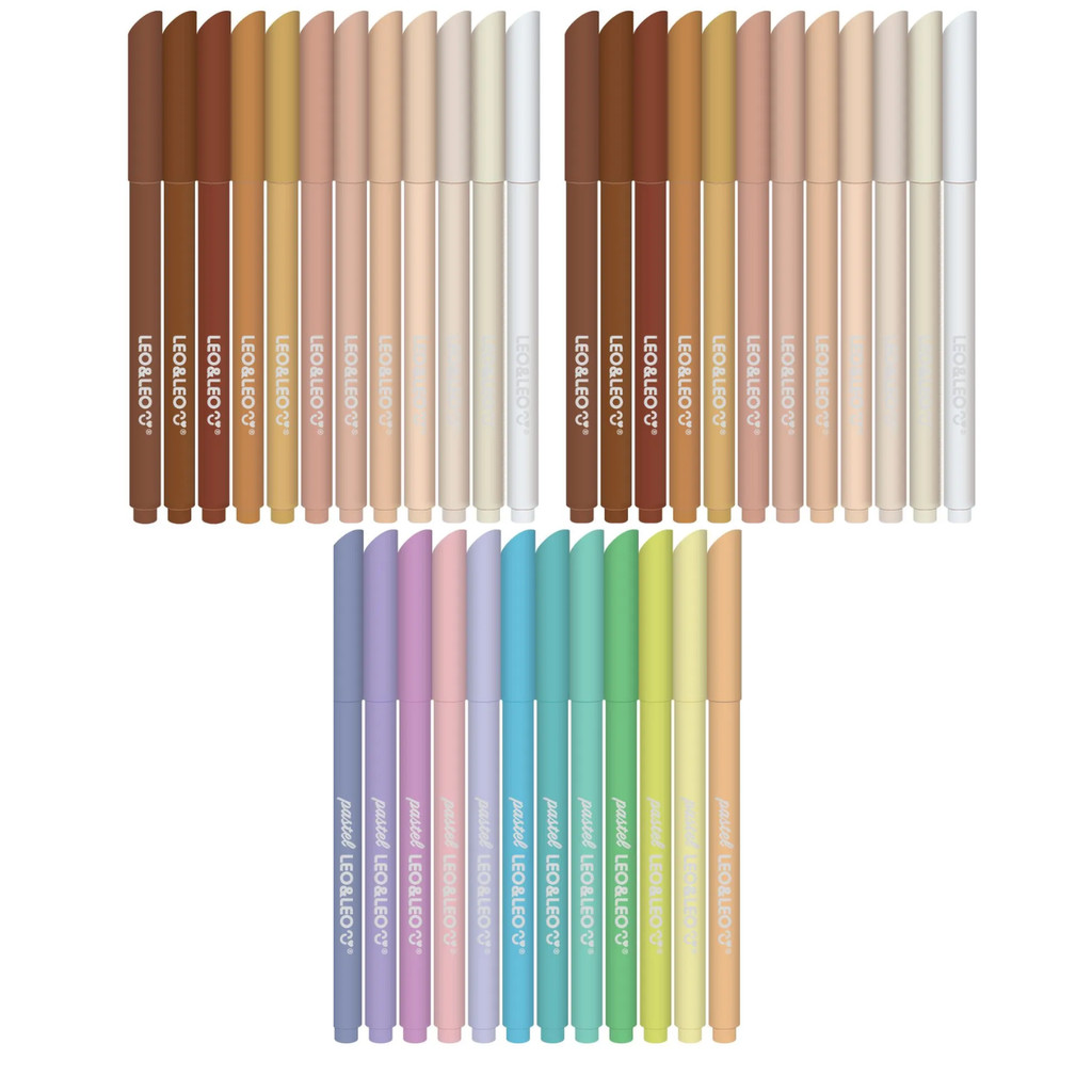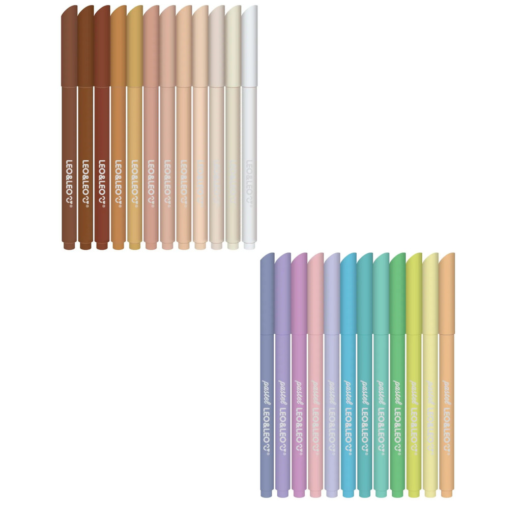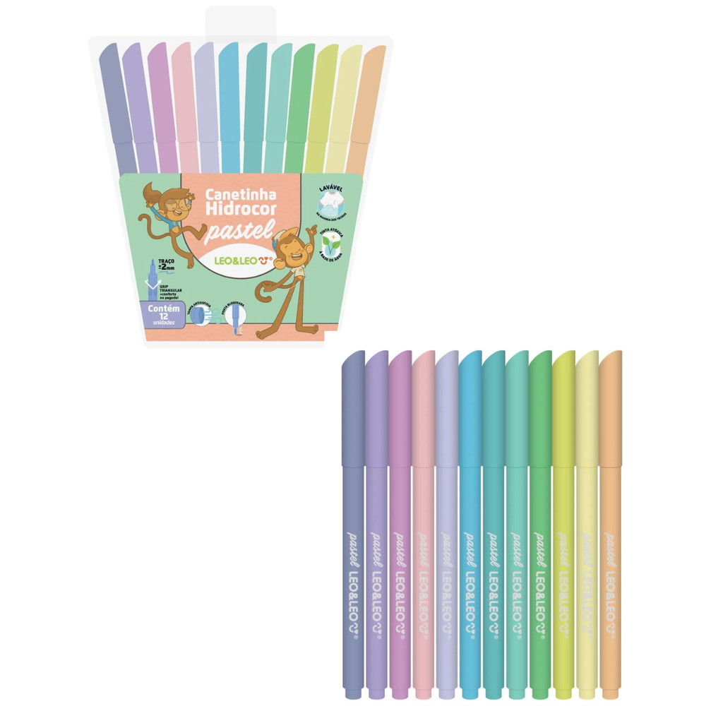 Caneta Hidrocor Tons Pastel e Tons de Pele – Estojo com 12 Unidades - Leo&Leo