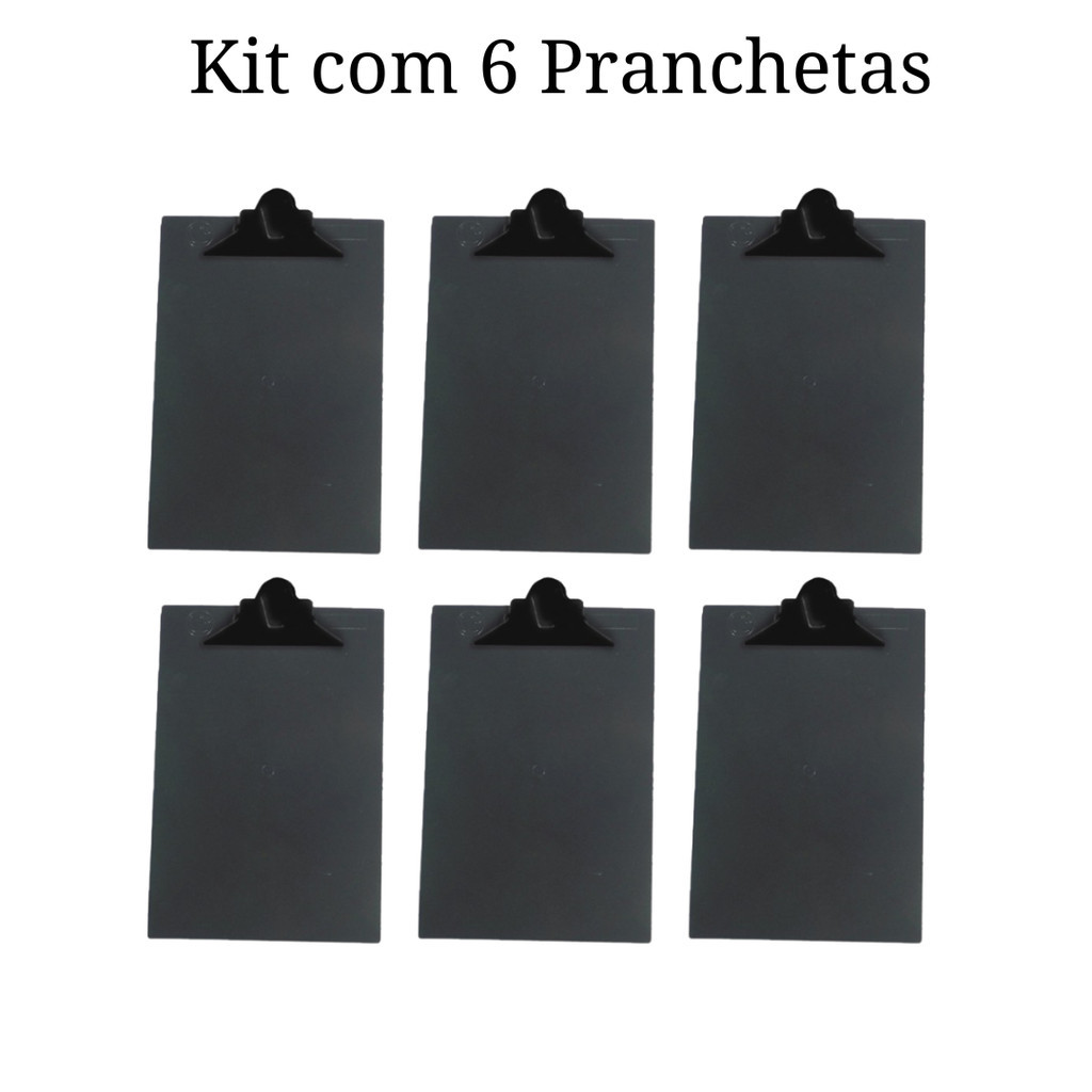 Kit com 6 Pranchetas Plastica com Prendedor