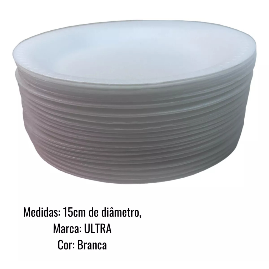 Prato de Isopor 15cm - ideal para sobremesas - Pacote com 100 Pratinho para Festas e Bolos