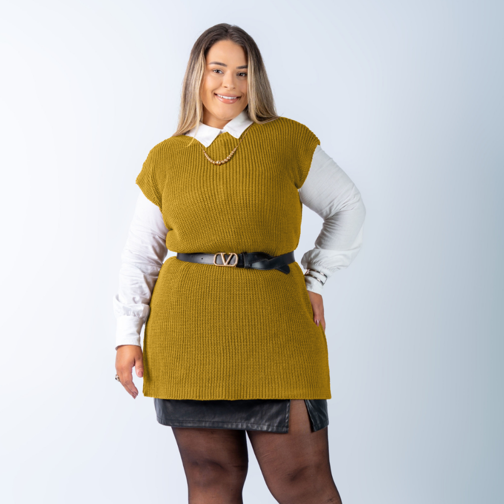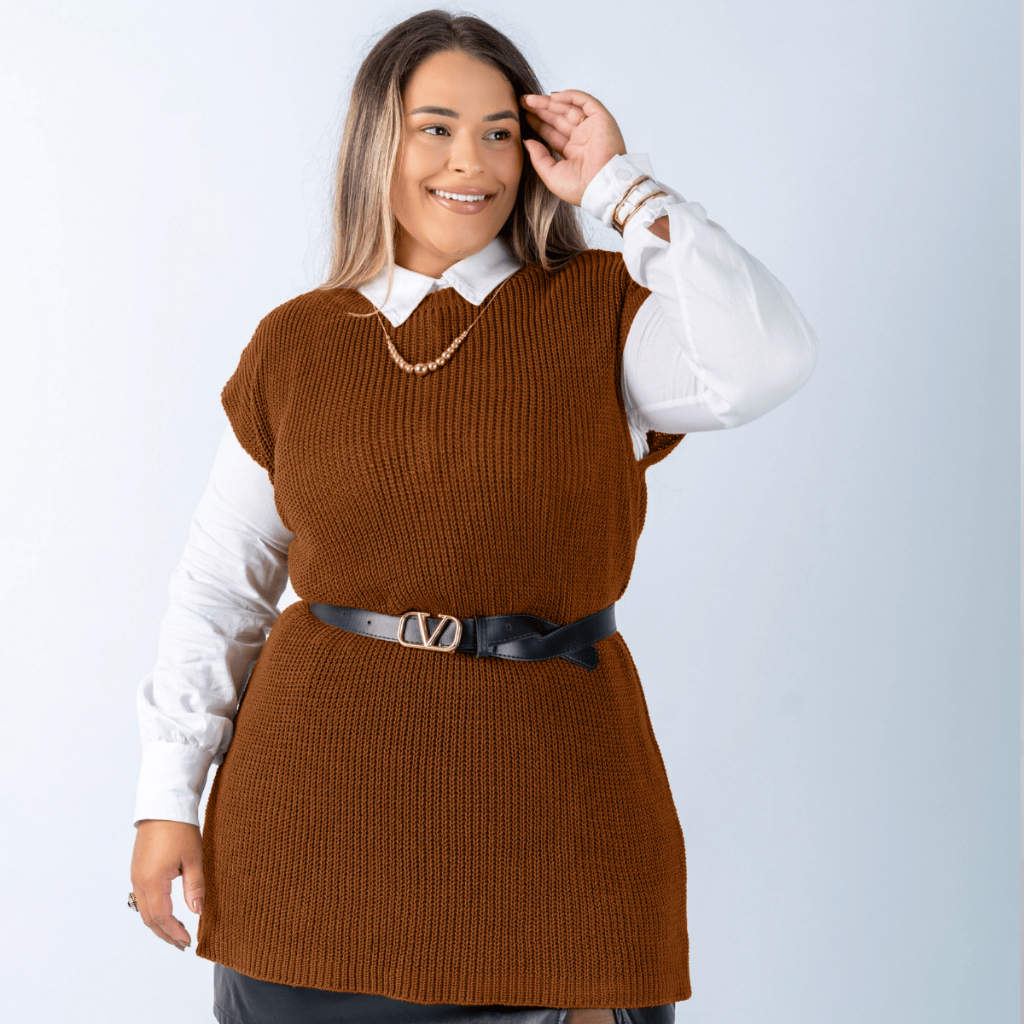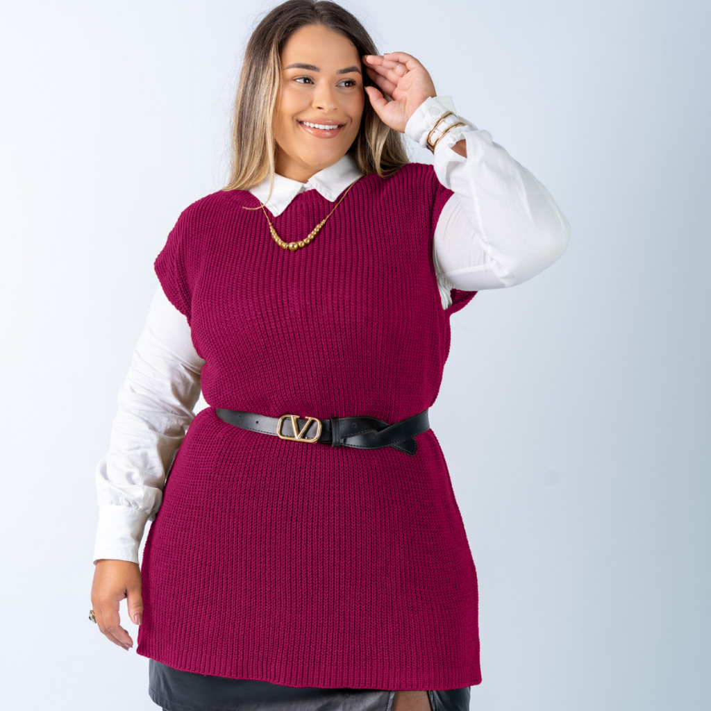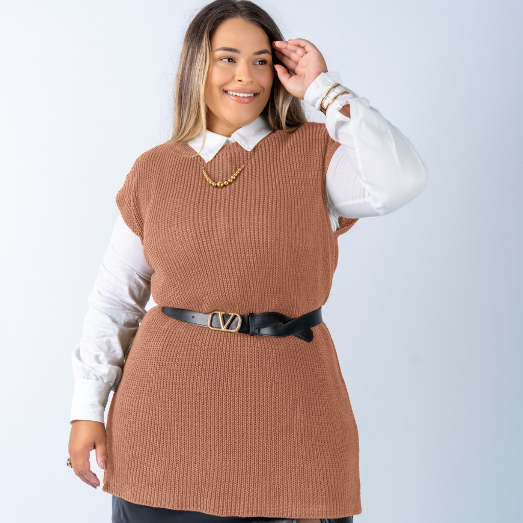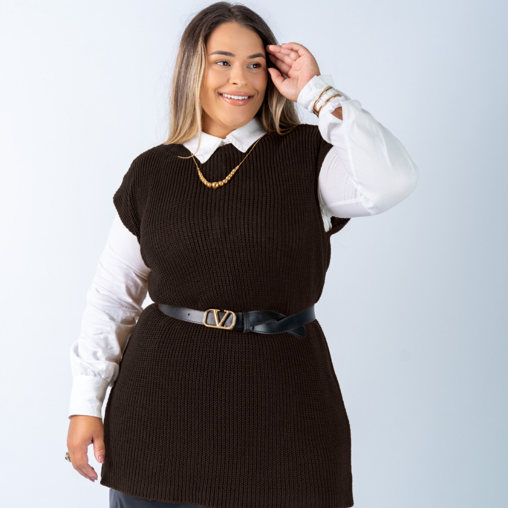 Colete Plus Size Feminino Alongado Canelado Elegante Casual Tricot Blusa