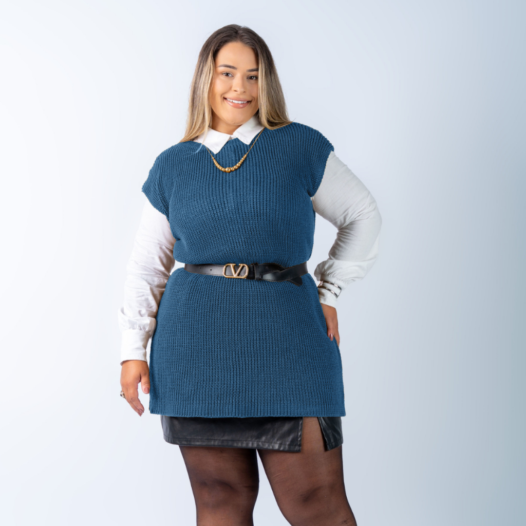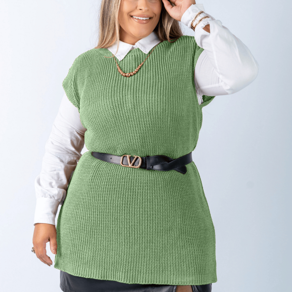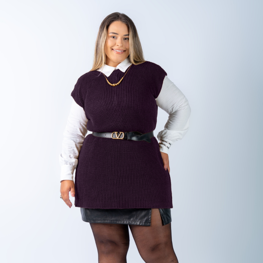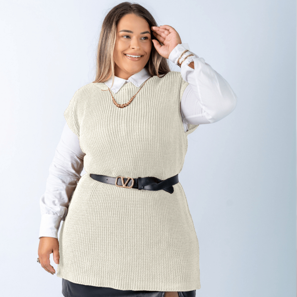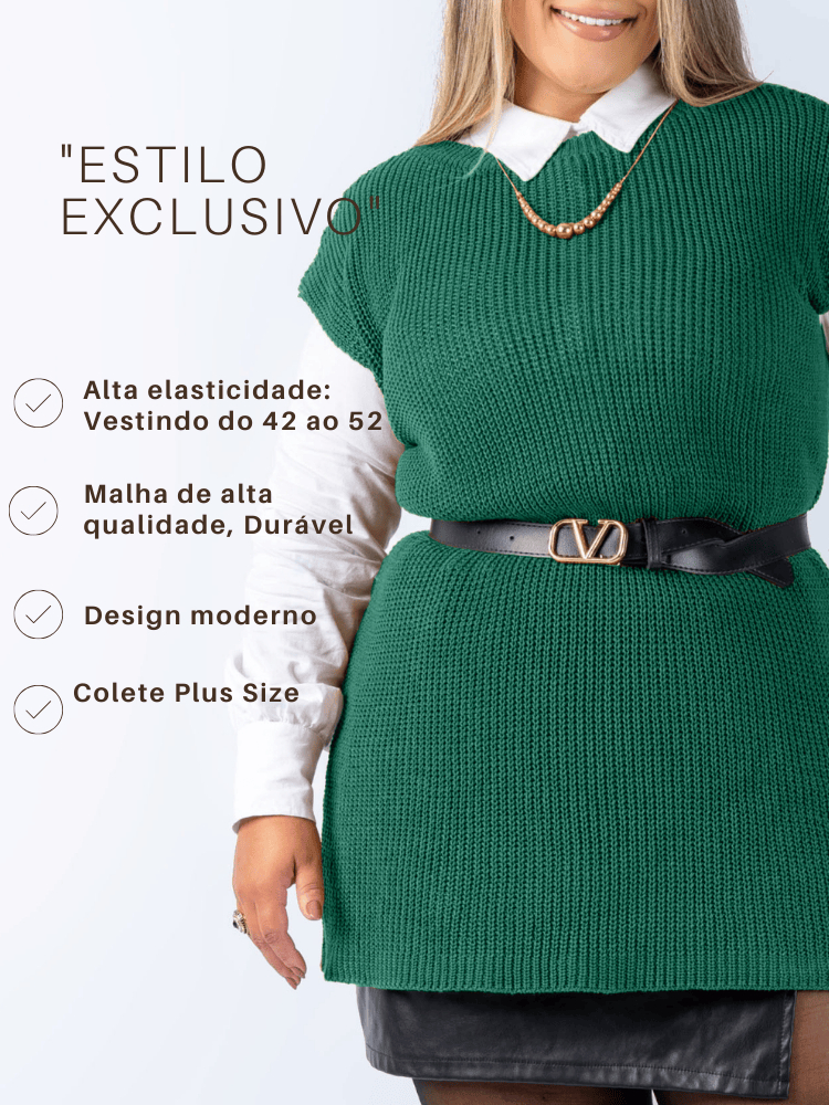 Colete Plus Size Feminino Alongado Canelado Elegante Casual Tricot Blusa