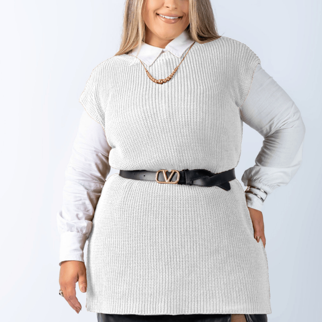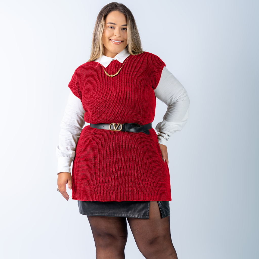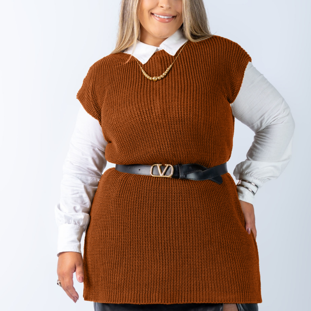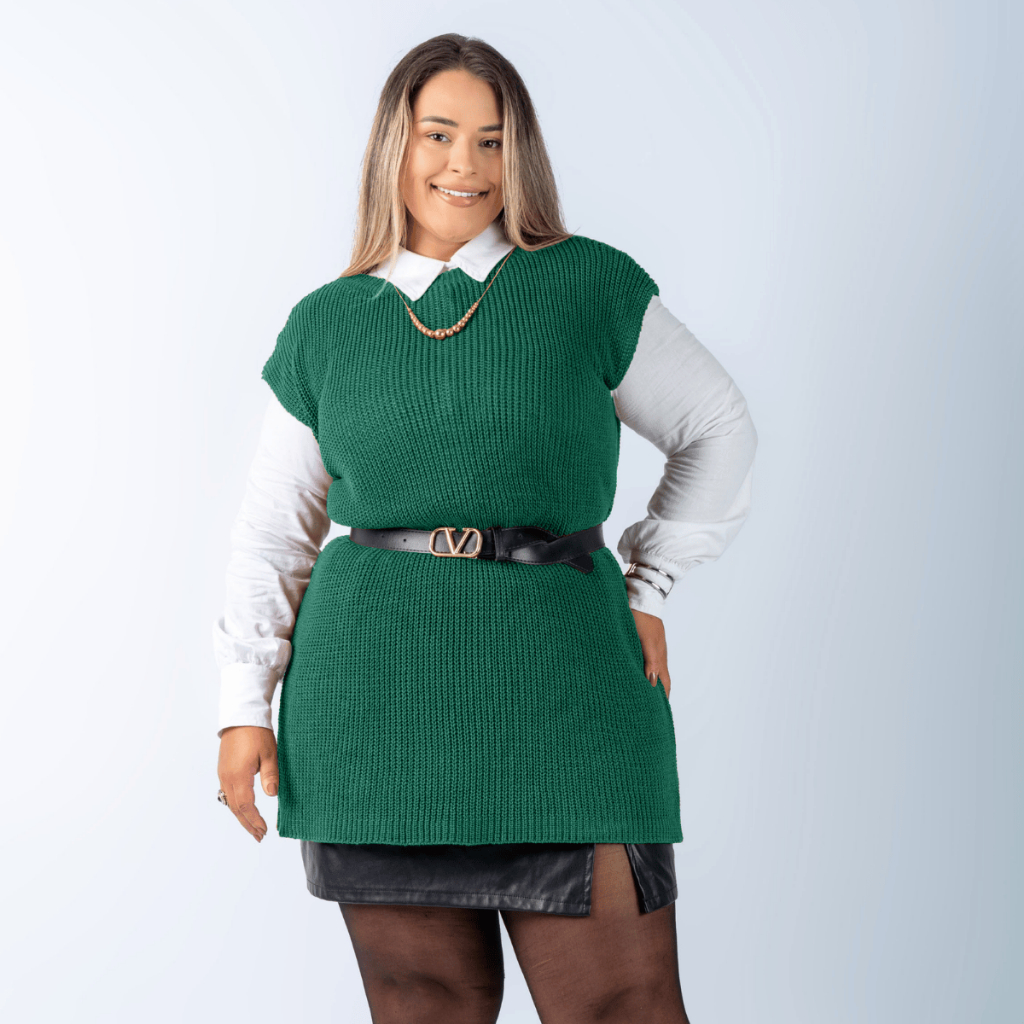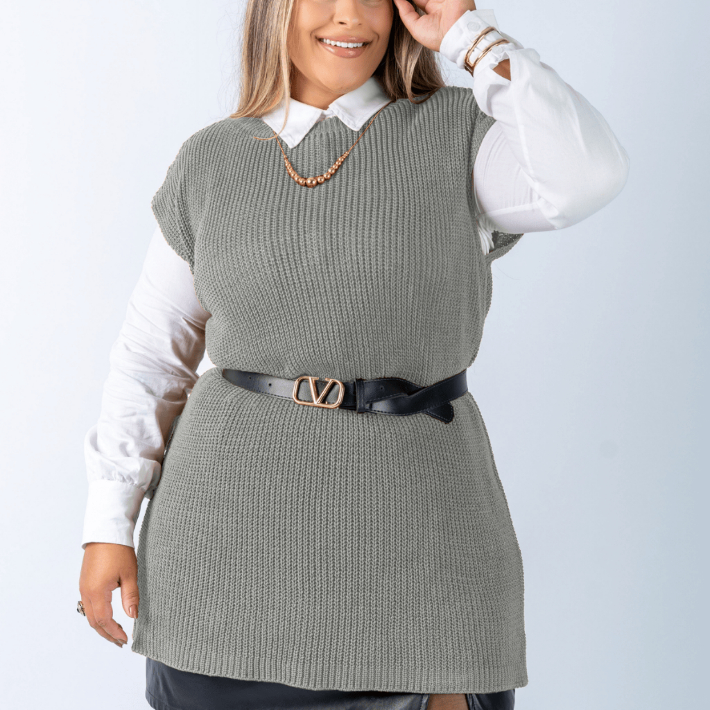 Colete Plus Size Feminino Alongado Canelado Elegante Casual Tricot Blusa