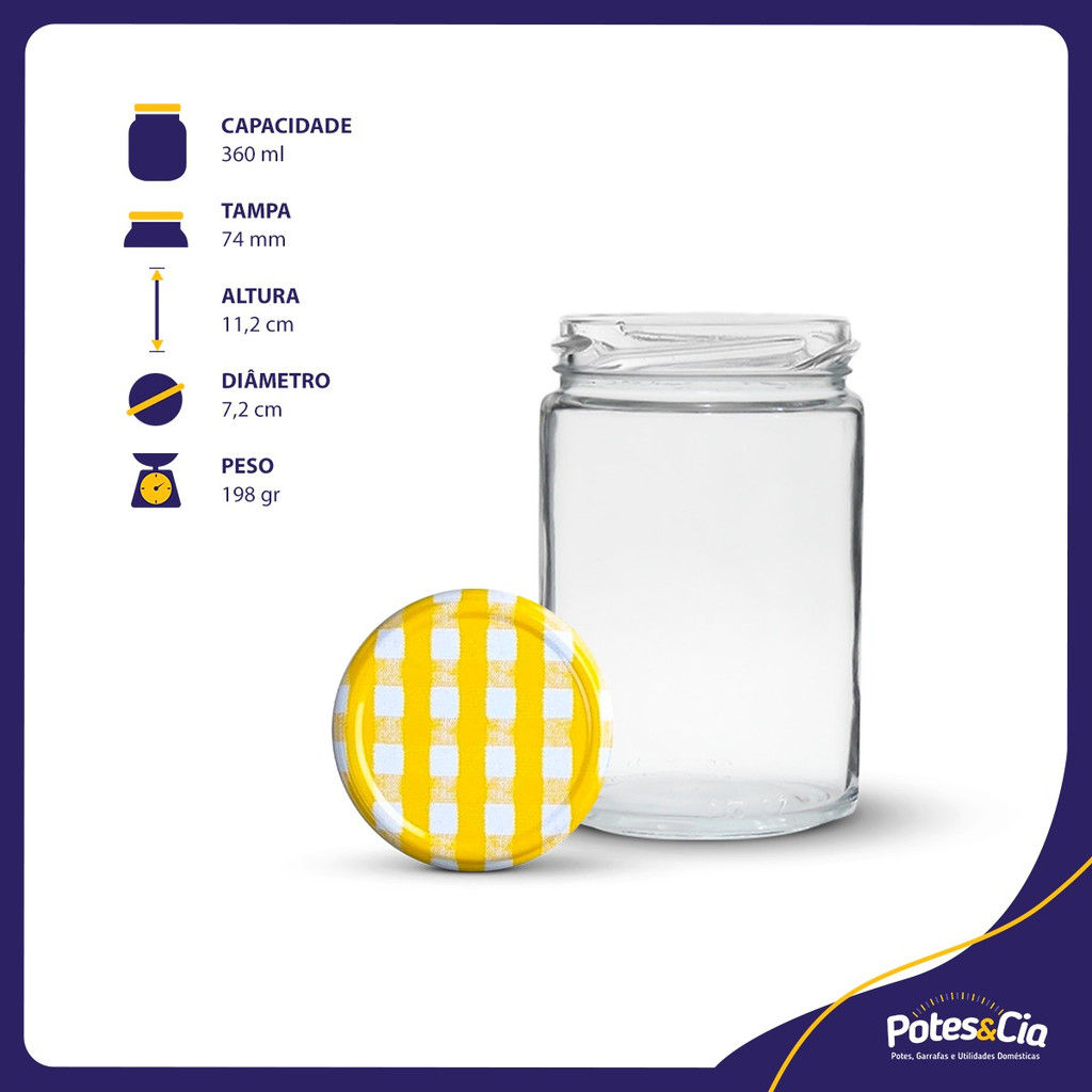 24 Potes Andino 360ml Com Tampa Metálica