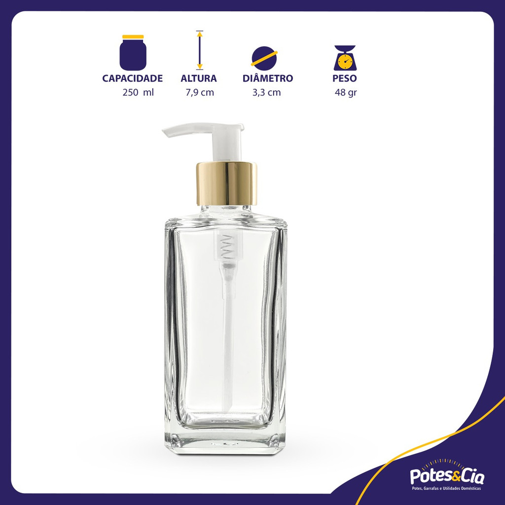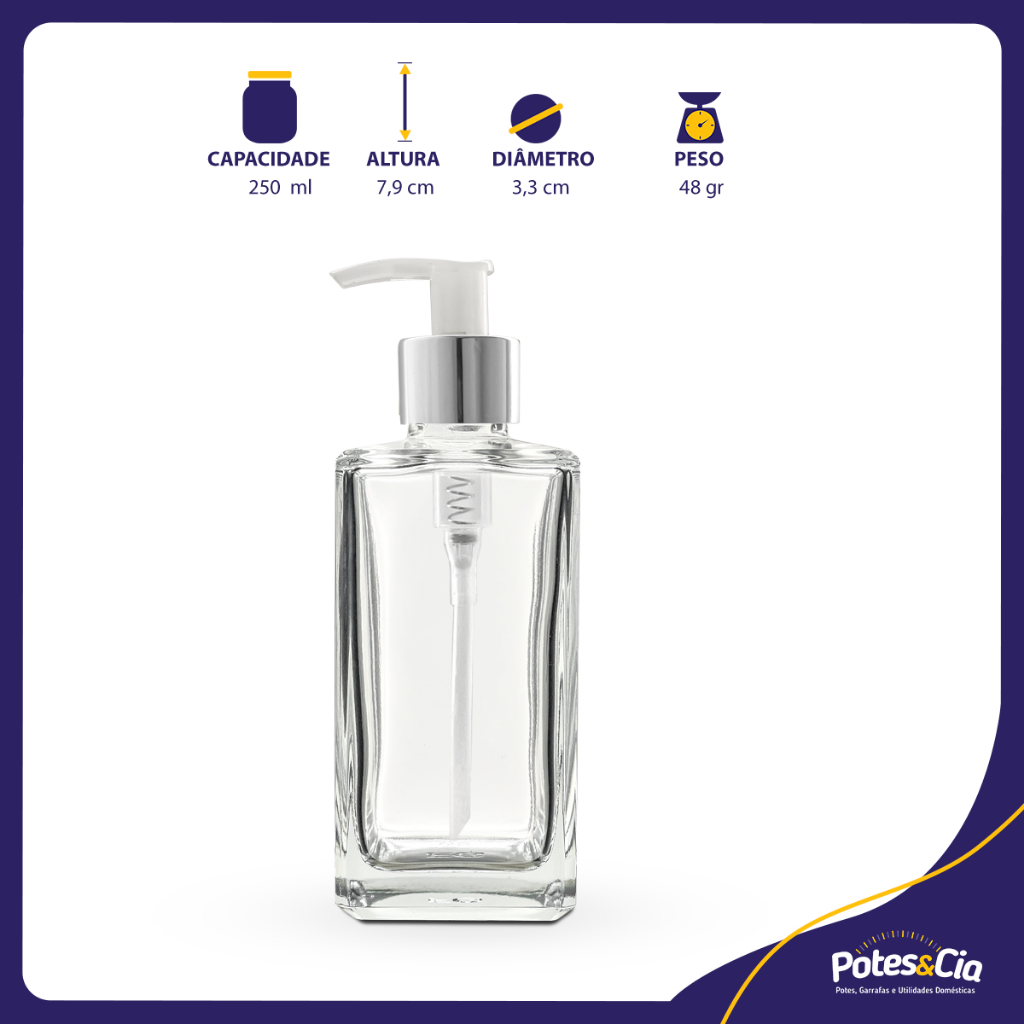 Kit 6 Porta Sabonete Líquido/álcool 250ml Retangular Cromado