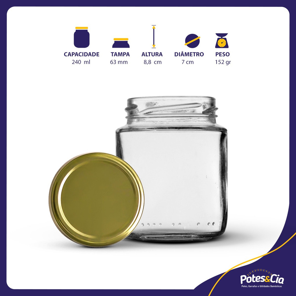 24 Potes De Vidro Belém 240ml + Tampas Metálicas + Lacres