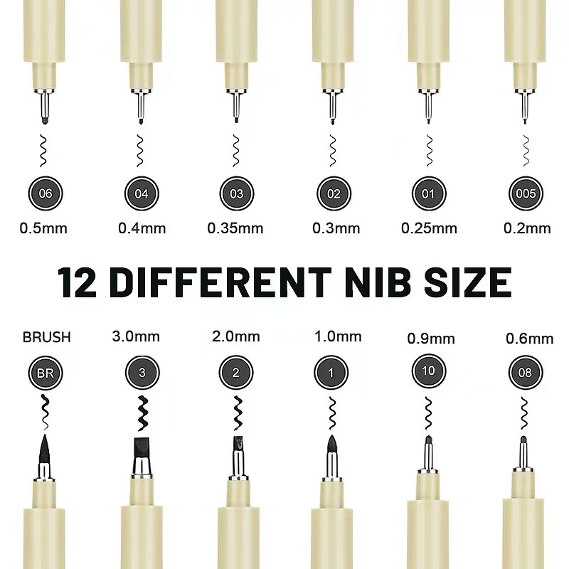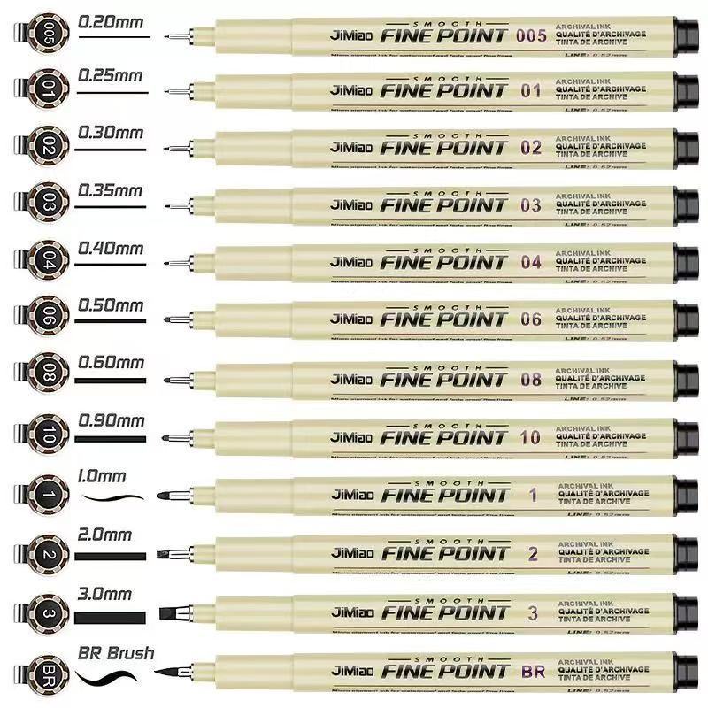Canetas De Tinta Micron Com Forro De Pigmento De Ponta 3/6/9/12 Para Esboços De Mangá , Desenho De Linha De Gancho