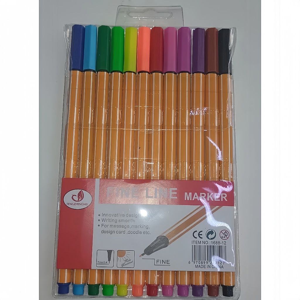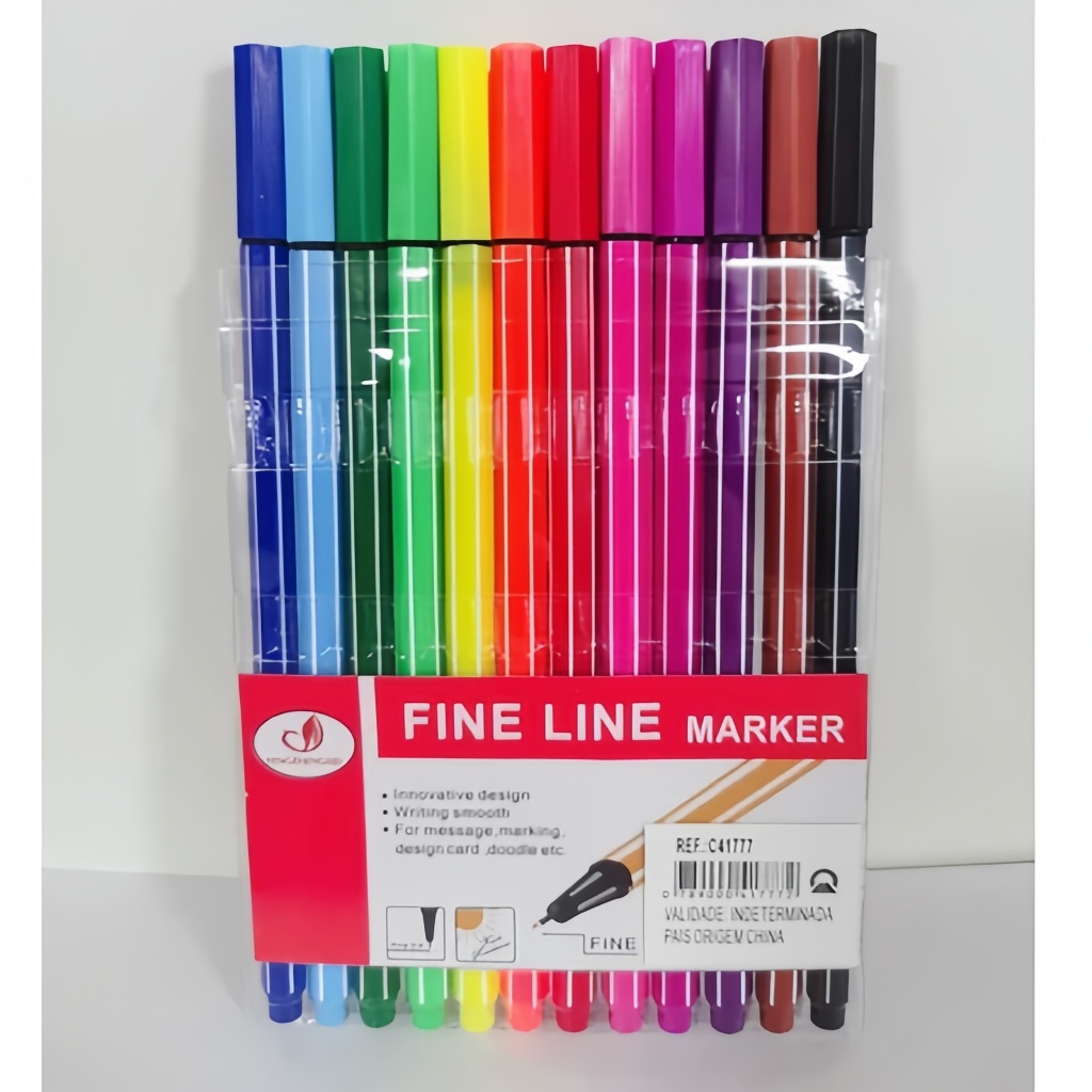 KIT COM 6/12/24/36/48 Canetas Coloridas Fine Line Ponta Fina 0.4 mm 1ª Linha