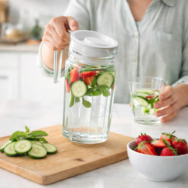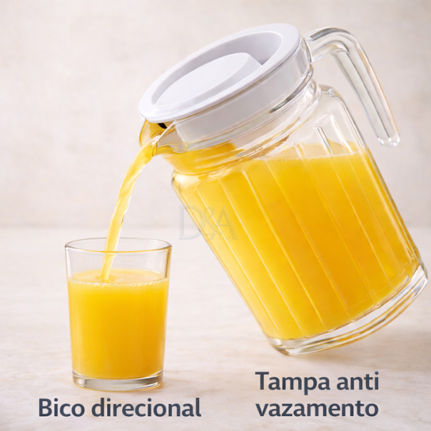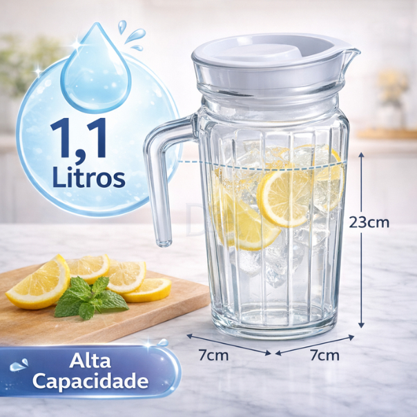 Jarra de Vidro Suiça 1L com Tampa Água Suco Vidro Resistente