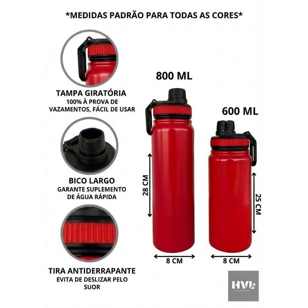 Garrafa Térmica inox Água Squeeze Inox Academia Quente & Frio 800 ml