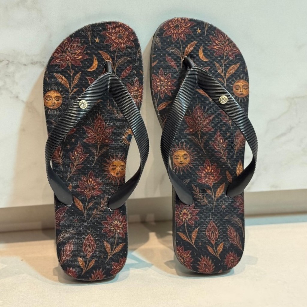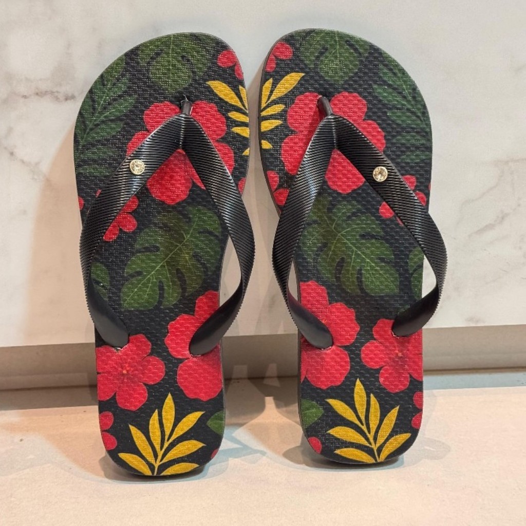 Chinelo Estampado Branco e Azul com Arte Floral Tradicional