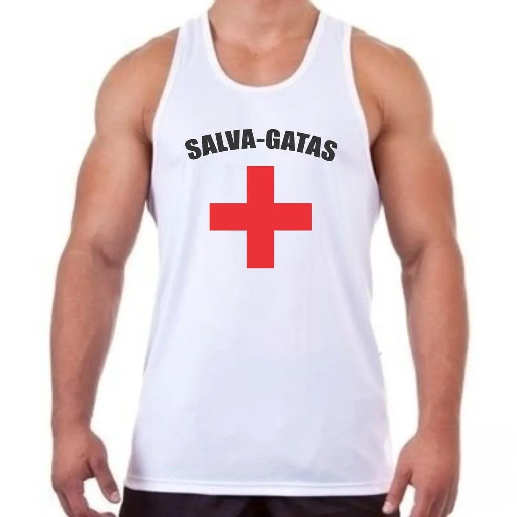 Camiseta Regata Salva vidas ou Salva gatas Camisa Masculina Frases Engraçadas