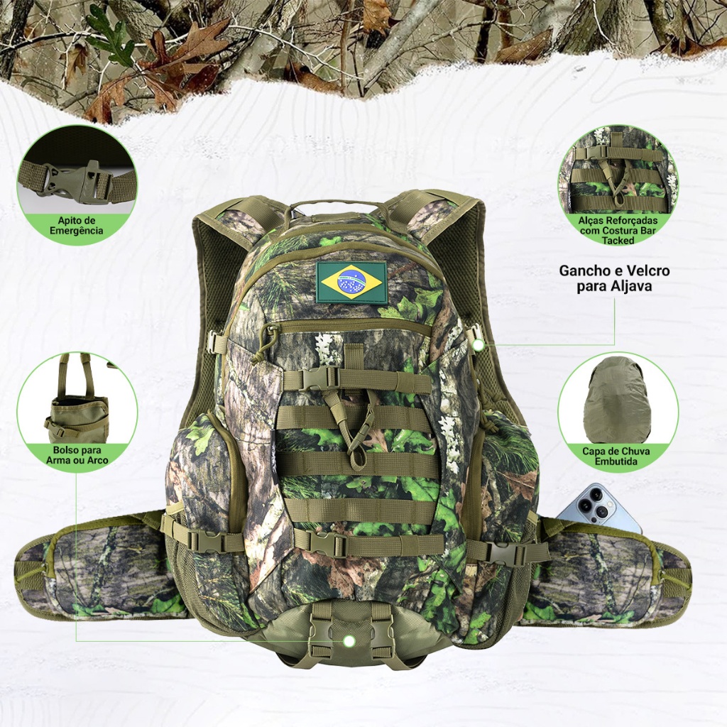 Mochila Militar Tática de Caça 40L com Capa Prova de Agua para Uso Ao Ar Livre,Materiais Silenciosos
