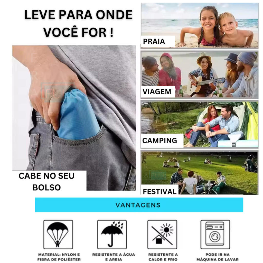 Tapete Esteira Impermeável Grande 2,10 x 2,00 Metros Praia Piquenique Camping Toalha Piquinique Acampamento