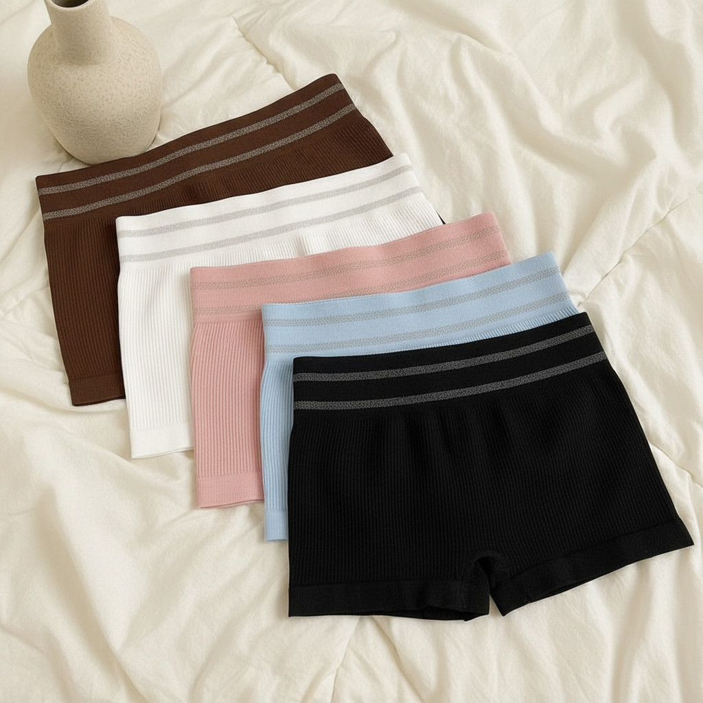 Kit 5 Calcinhas Boxer Canelada Shortinho Sem Costura Cueca Feminina Poliamida Importada Lingerie MK