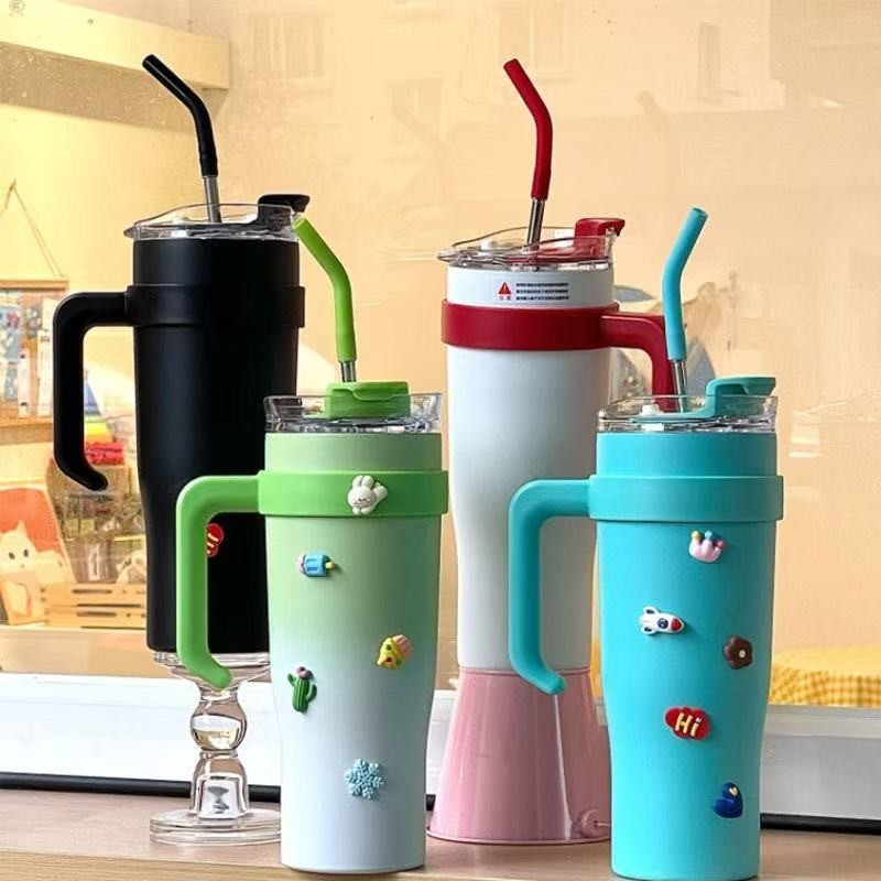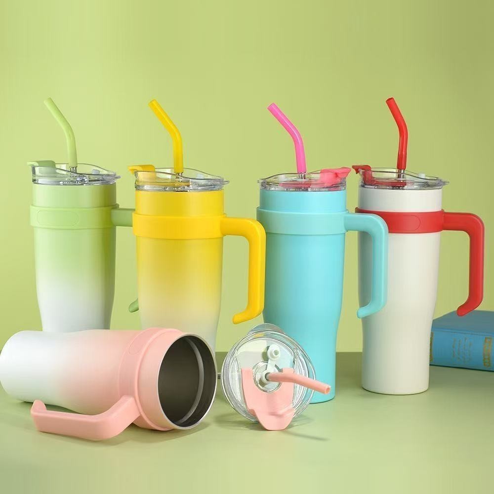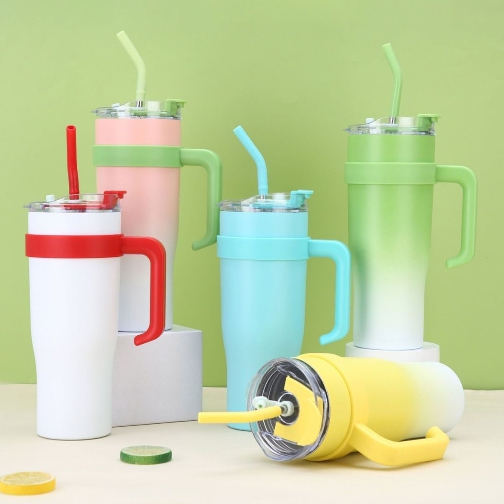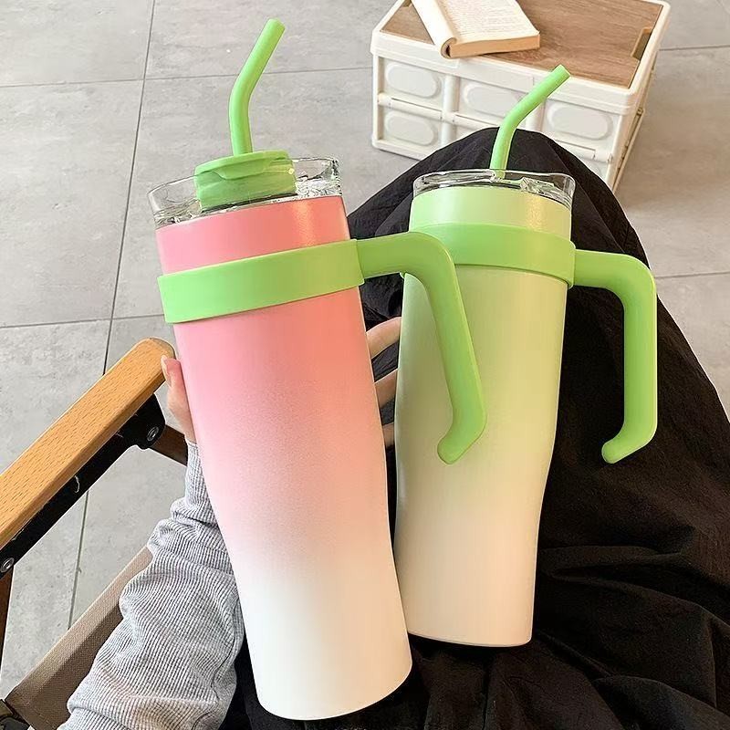 Copo Garrafa degrade Térmico com Alça e Canudo 1.2 litro 1200ml Copo inoxidável