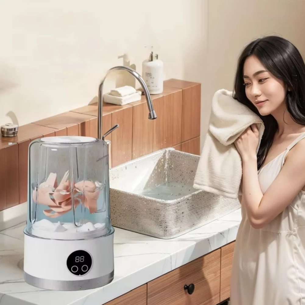 Mini Máquina de Lavar Portátil 1000ml – Lavadora Compacta USB para Roupas Íntimas, Meias e delicada
