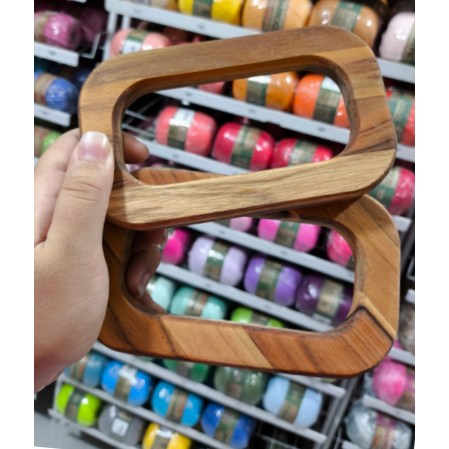 PAR de Alça de Madeira Teca luxo Exclusiva para Bolsas, Bags e Cestos Artesanais (Vendido em Pares