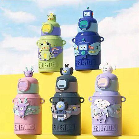 Garrafa Térmica INFANTIL KIDS FUN com Capa e Acessóríos 450ml