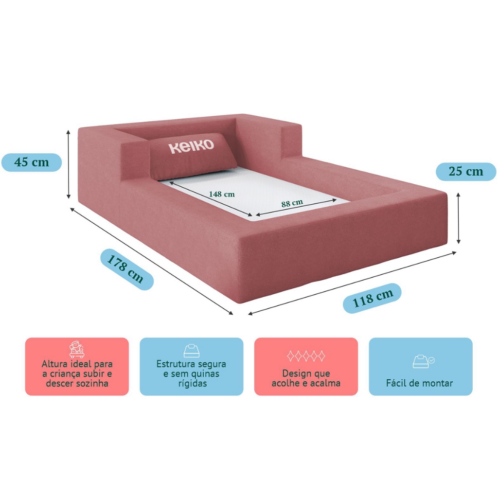 Cama Montessoriana Berço Aconchego 100% Espuma Rosa Keiko