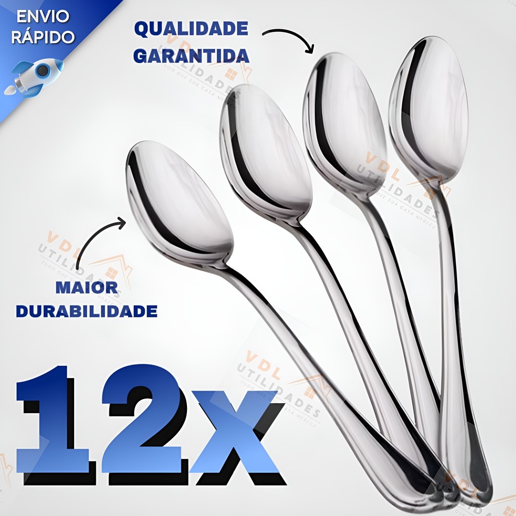 Jogo de Talheres 24 peças de Colher Aço Inox Mesa Cozinha Casa