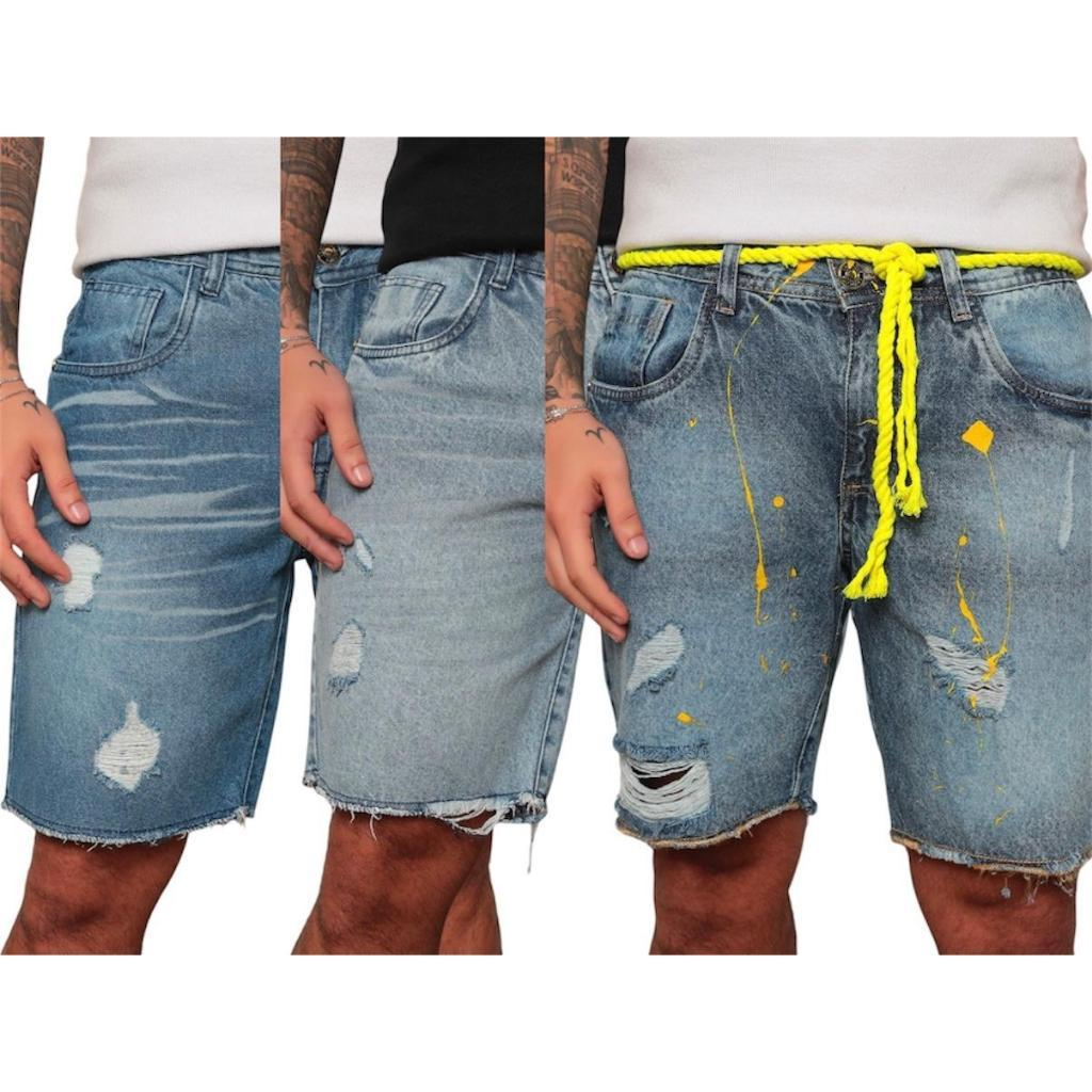 Bermuda JEANS kit 3 bermudas jeans masculina estilosa curta jovem