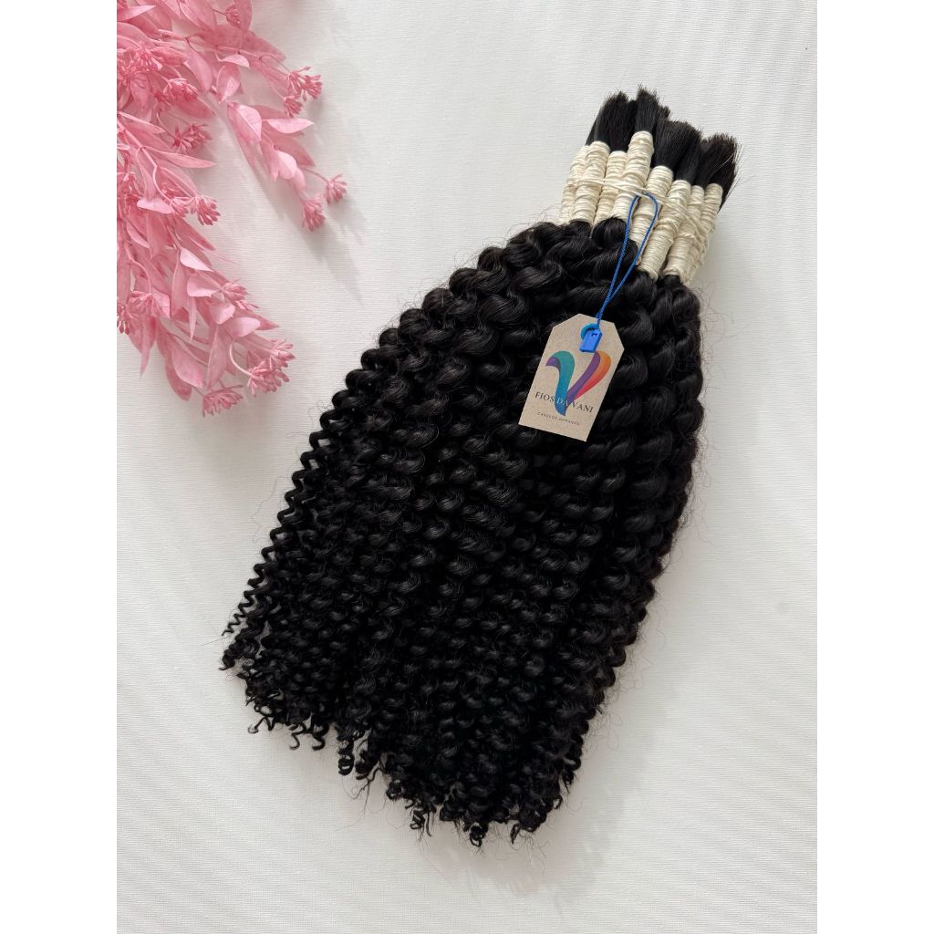 Cabelo Humano Cacheado a Vapor 55cm – Cacho Tipo 1 bem fechado.