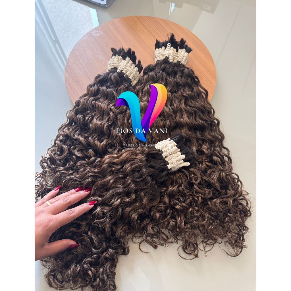 Cabelo Humano Morena Iluminada Cacheado Caipira 45cm a 75cm - Brilho e Volume.