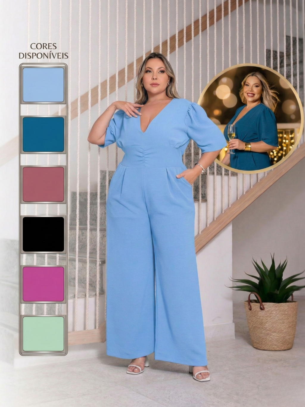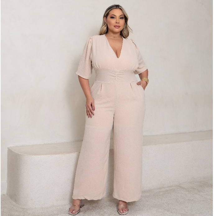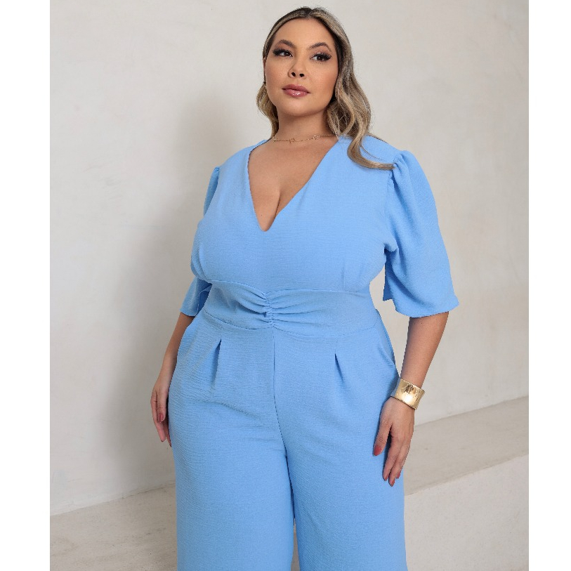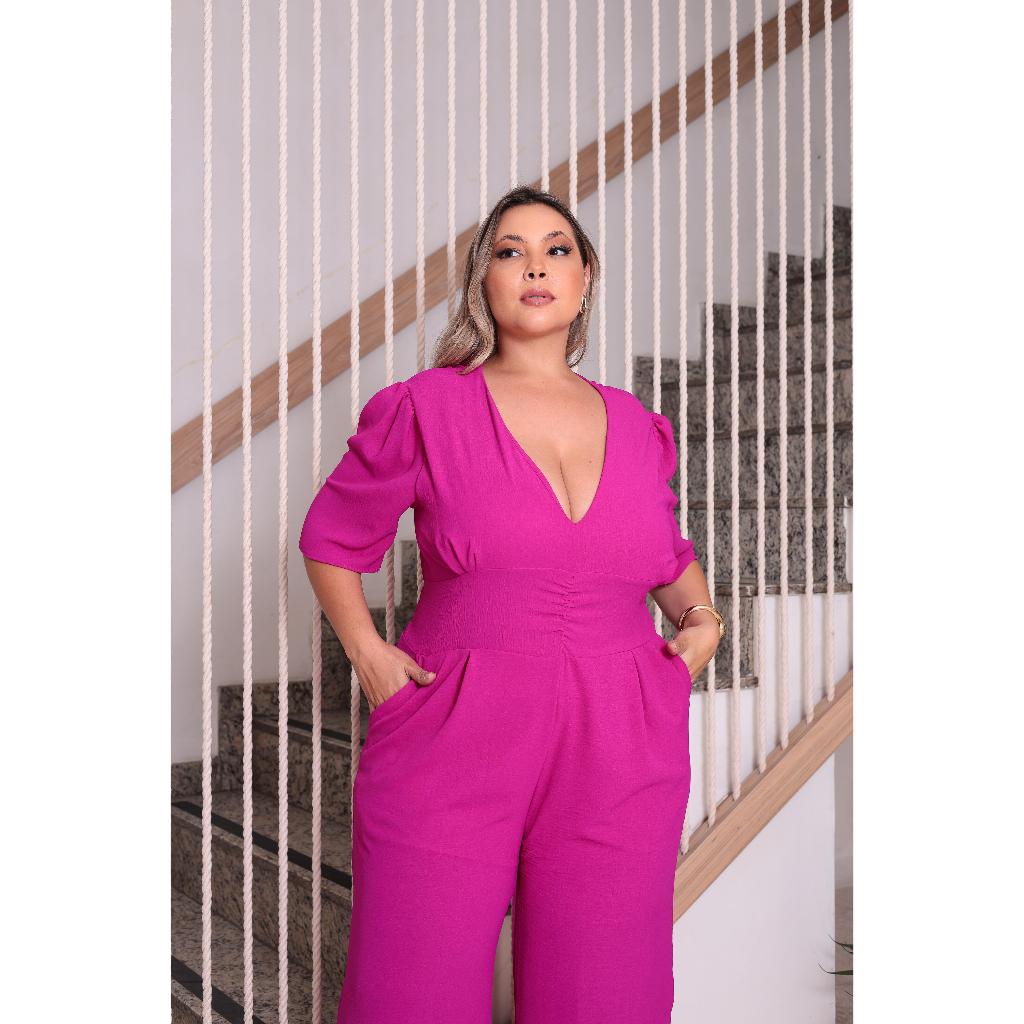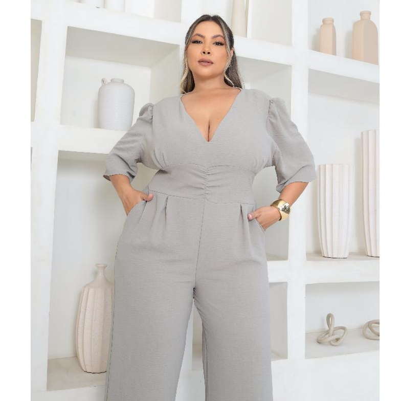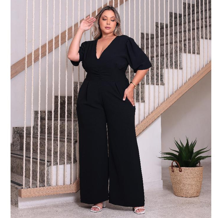 macacão feminino plus size longo pantalona com lastex modelador novo lançamento