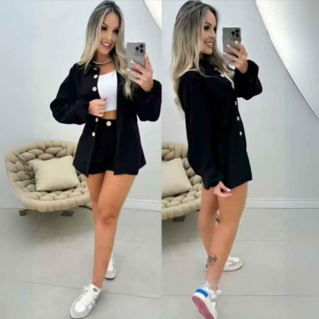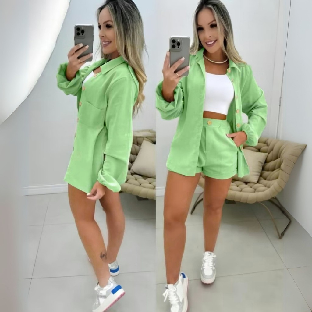 conjunto femenina camisa manga longa short
