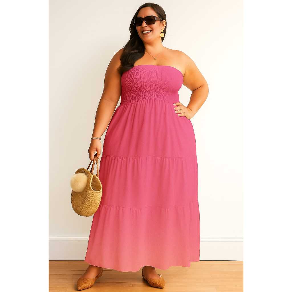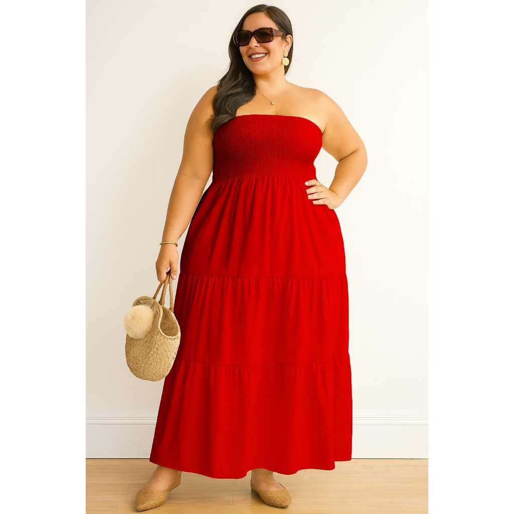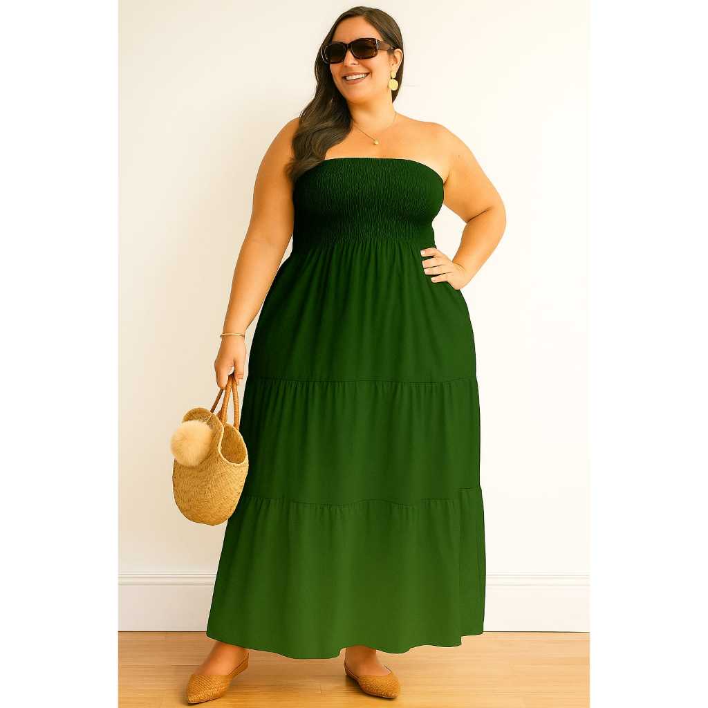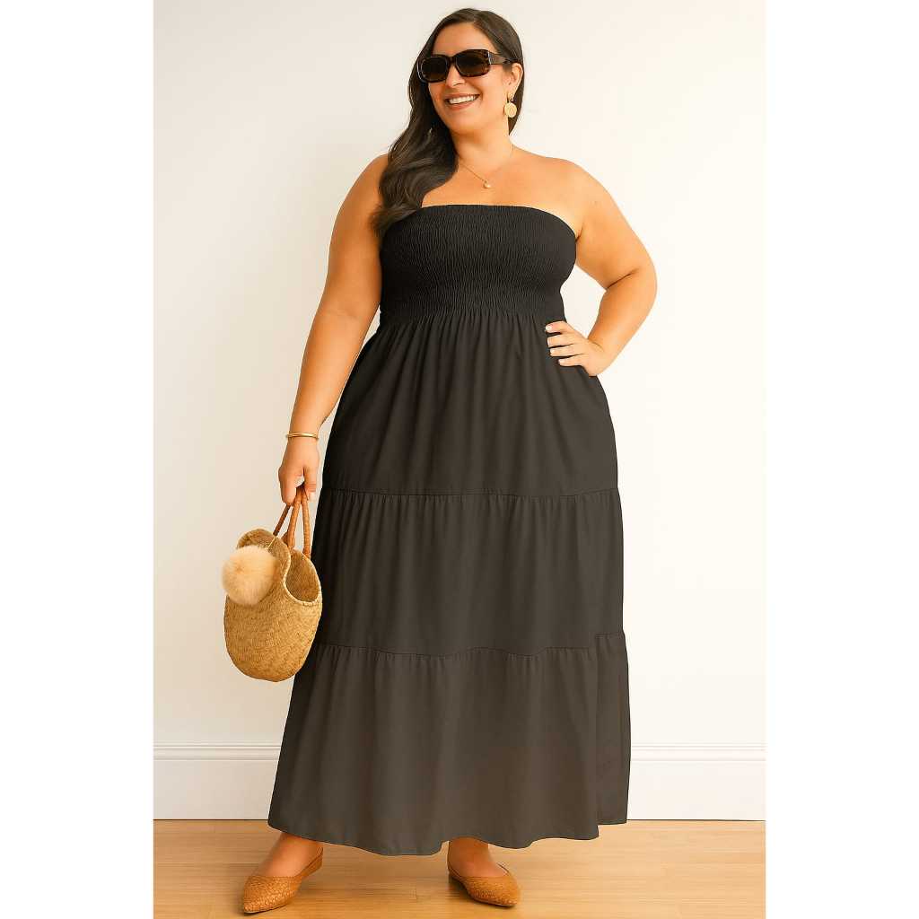 Vestido Longo PLUS SIZE Tomara que Caia com Lastex no Busto DUNA Elegante Casual