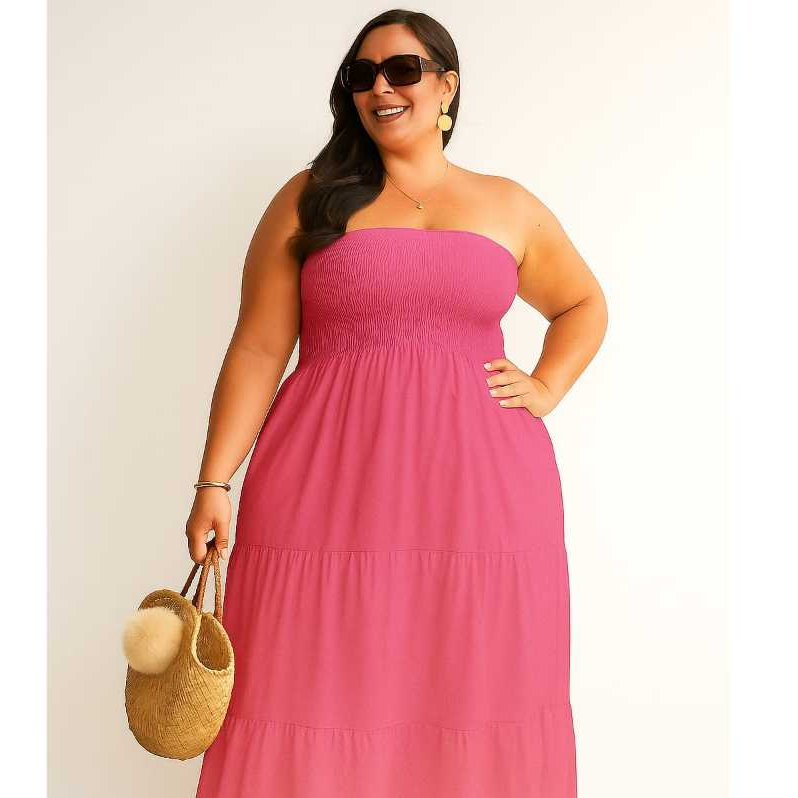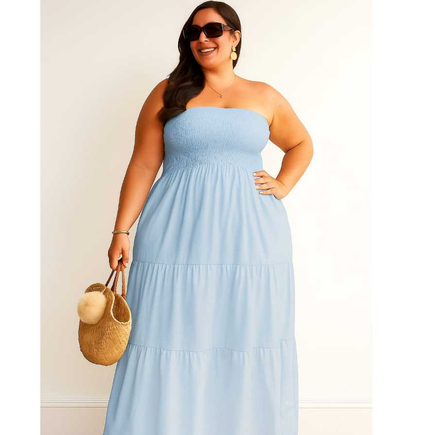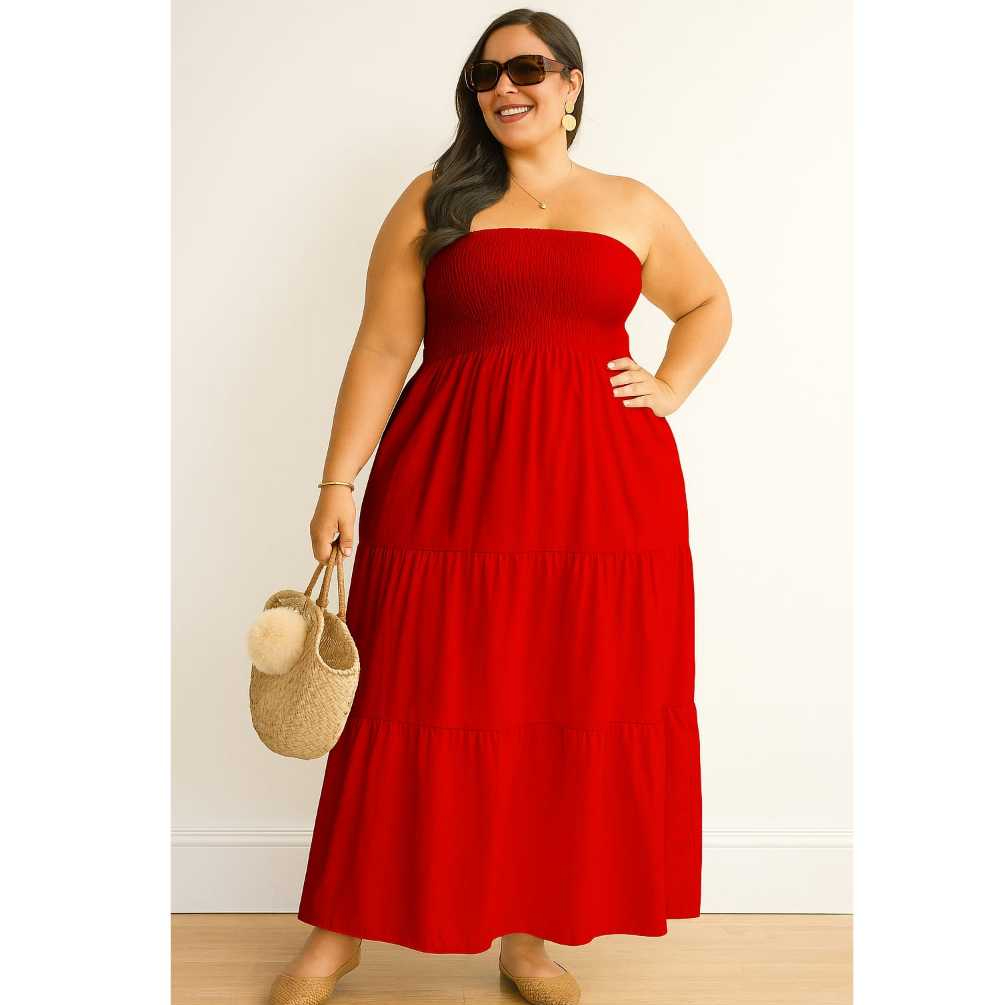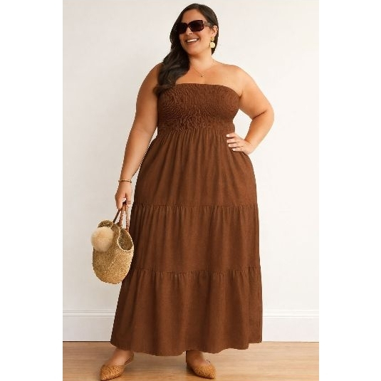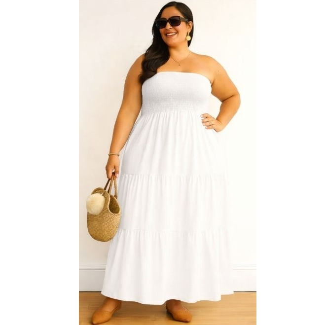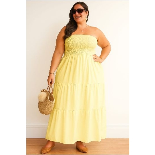 Vestido Longo PLUS SIZE Tomara que Caia com Lastex no Busto DUNA Elegante Casual