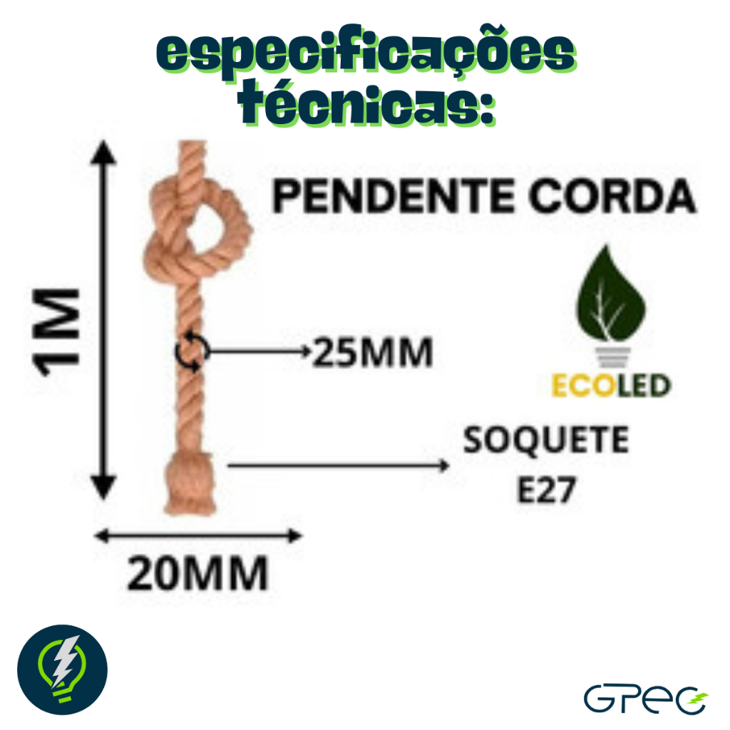 Kit 3 Pendente Luminária Vintage Corda Retro Rústico Soquete Bocal E27 Canopla De Metal Para Teto