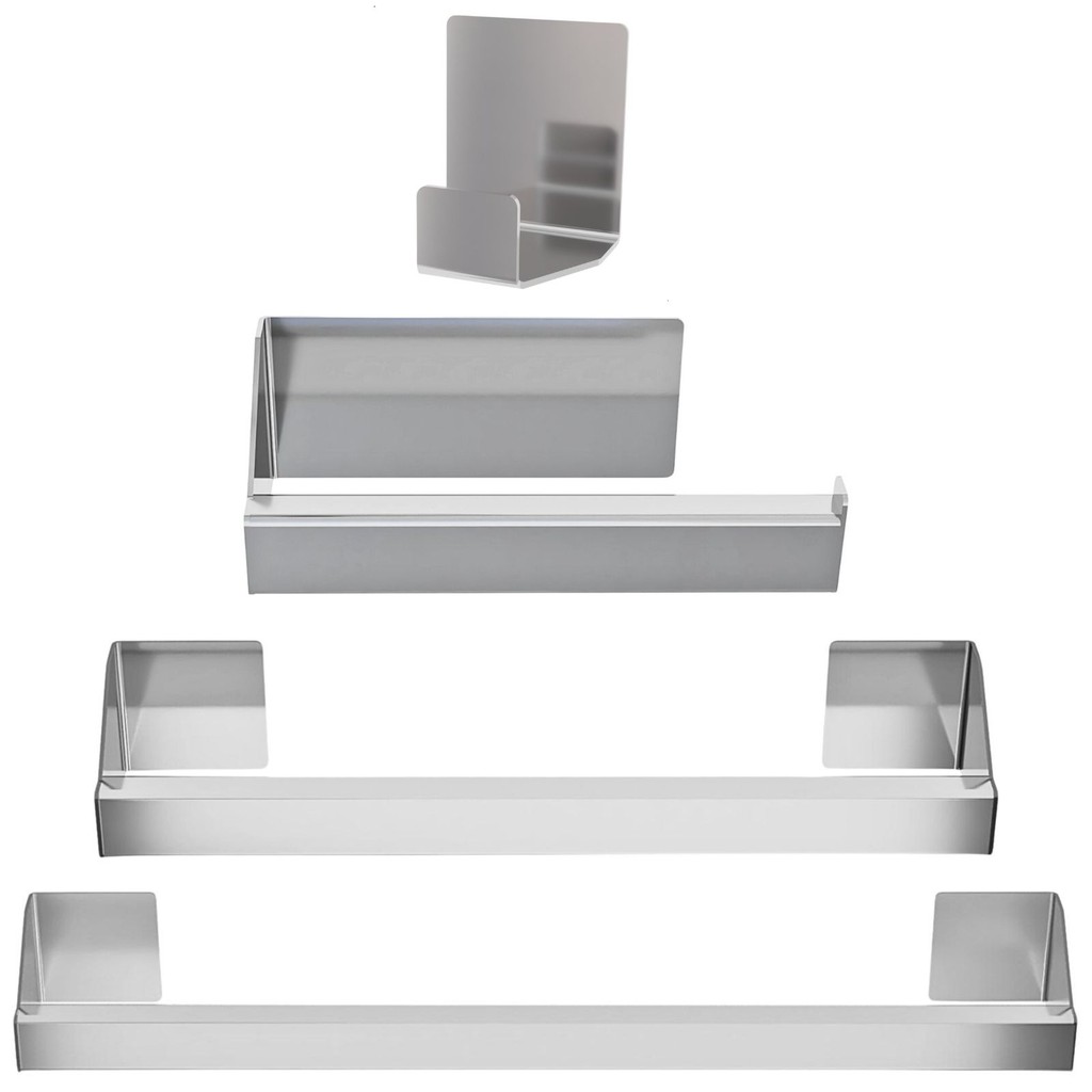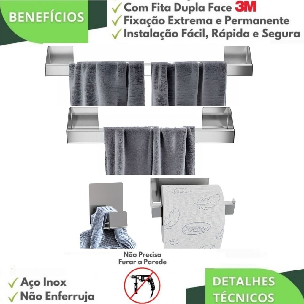Kit Acessórios Banheiro 4 Peças Inox Com Adesivo 3M SF.DF
