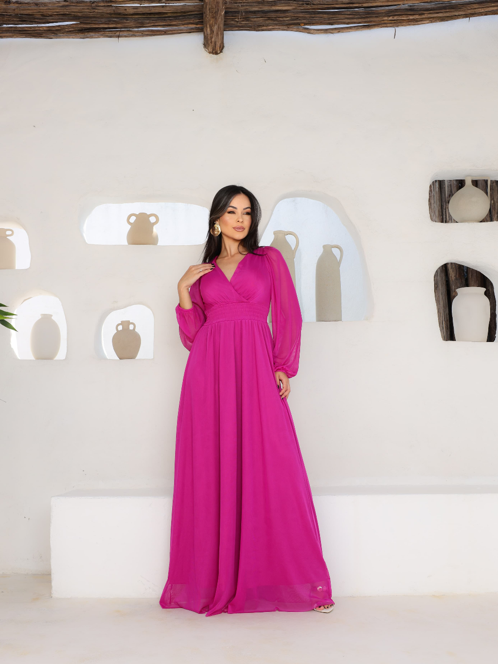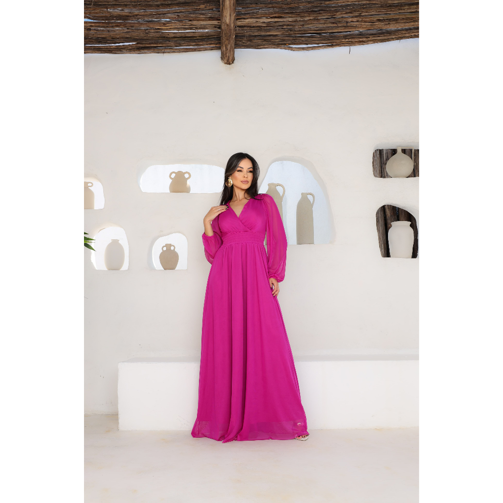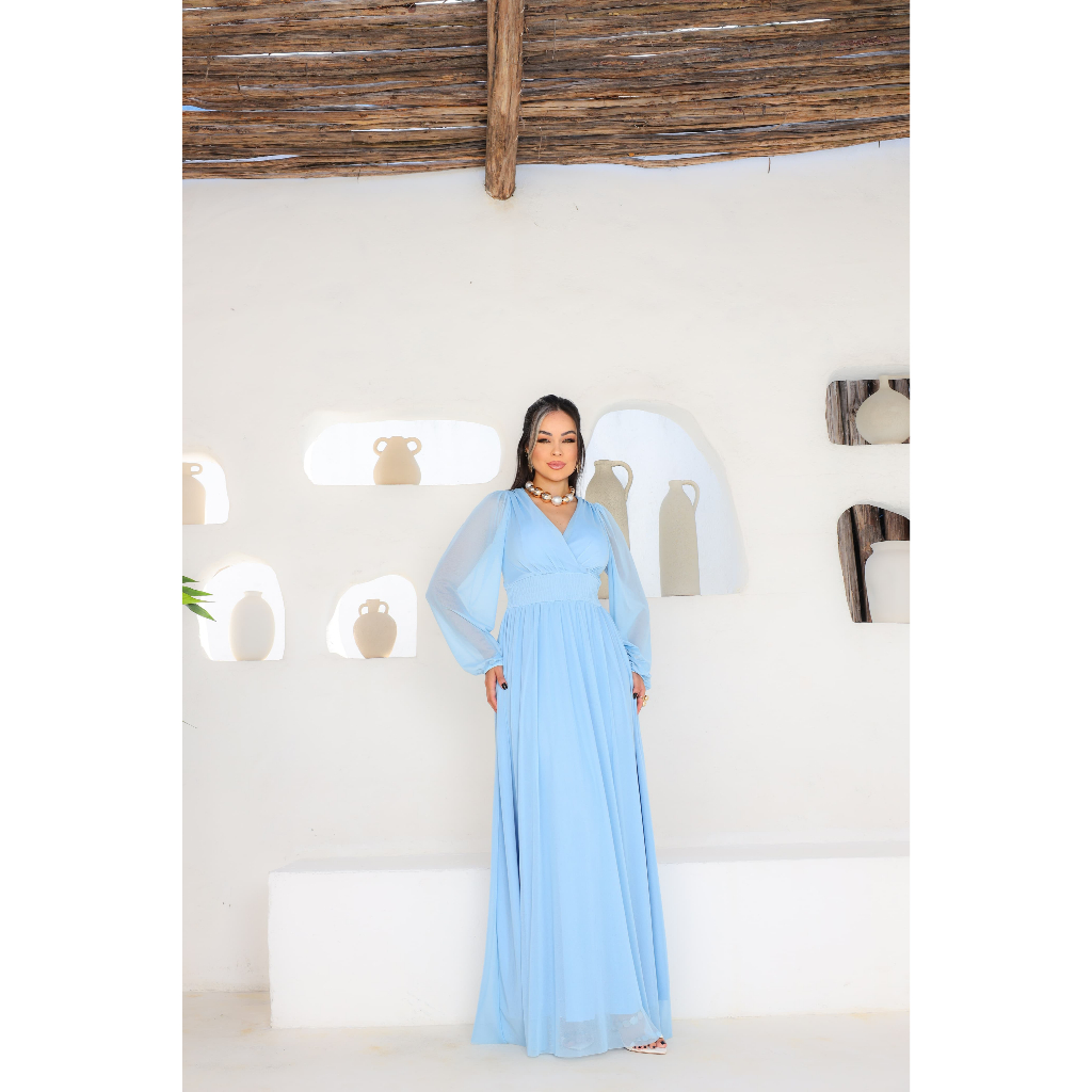Vestido Evangélico Longo Clássico com Manga Comprida