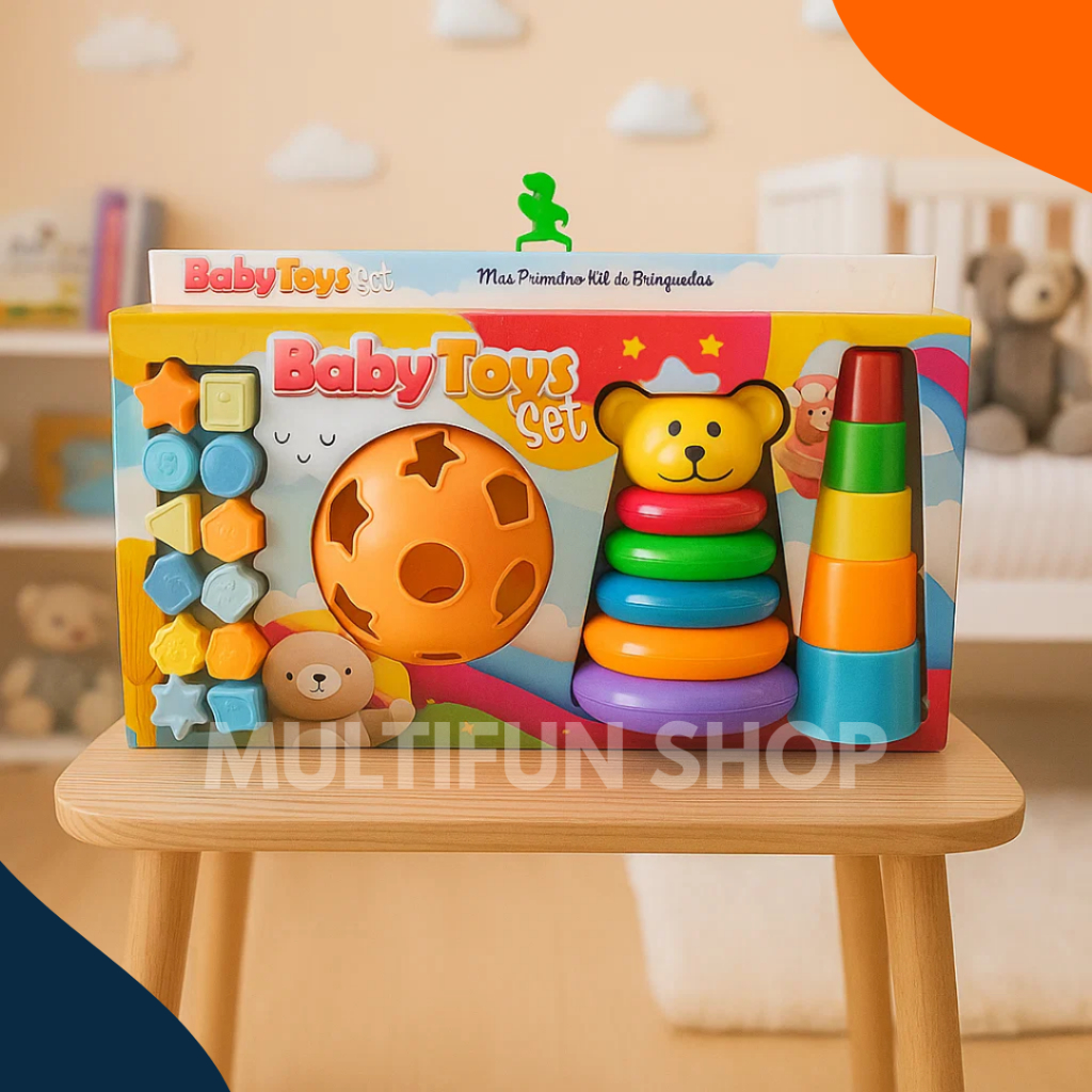 Kit de Brinquedos Educativos para Bebê | Empilhar, Encaixar e Estimular com Formas Coloridas
