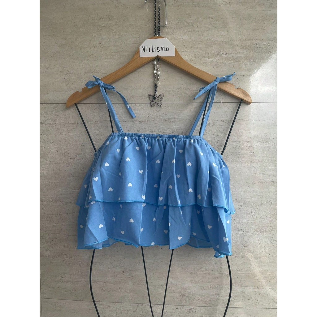 Top Feminino Com Bainha Franzida CROPPED EM CAMADAS COM AMARRAÇÃO